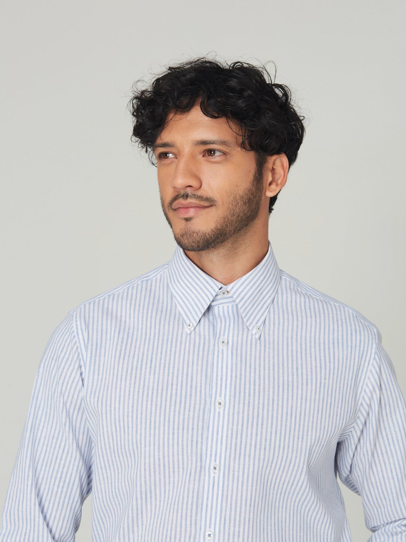 Tên sản phẩm: Áo sơ mi Benjamin Barker Takaji Blue Bengal Stripe Linen