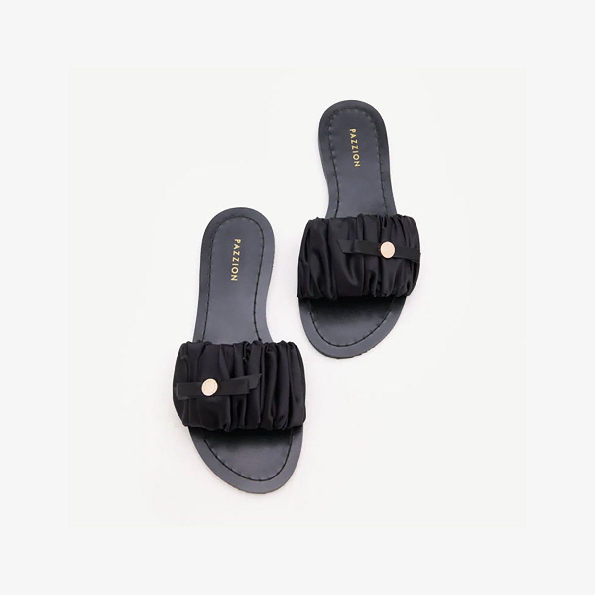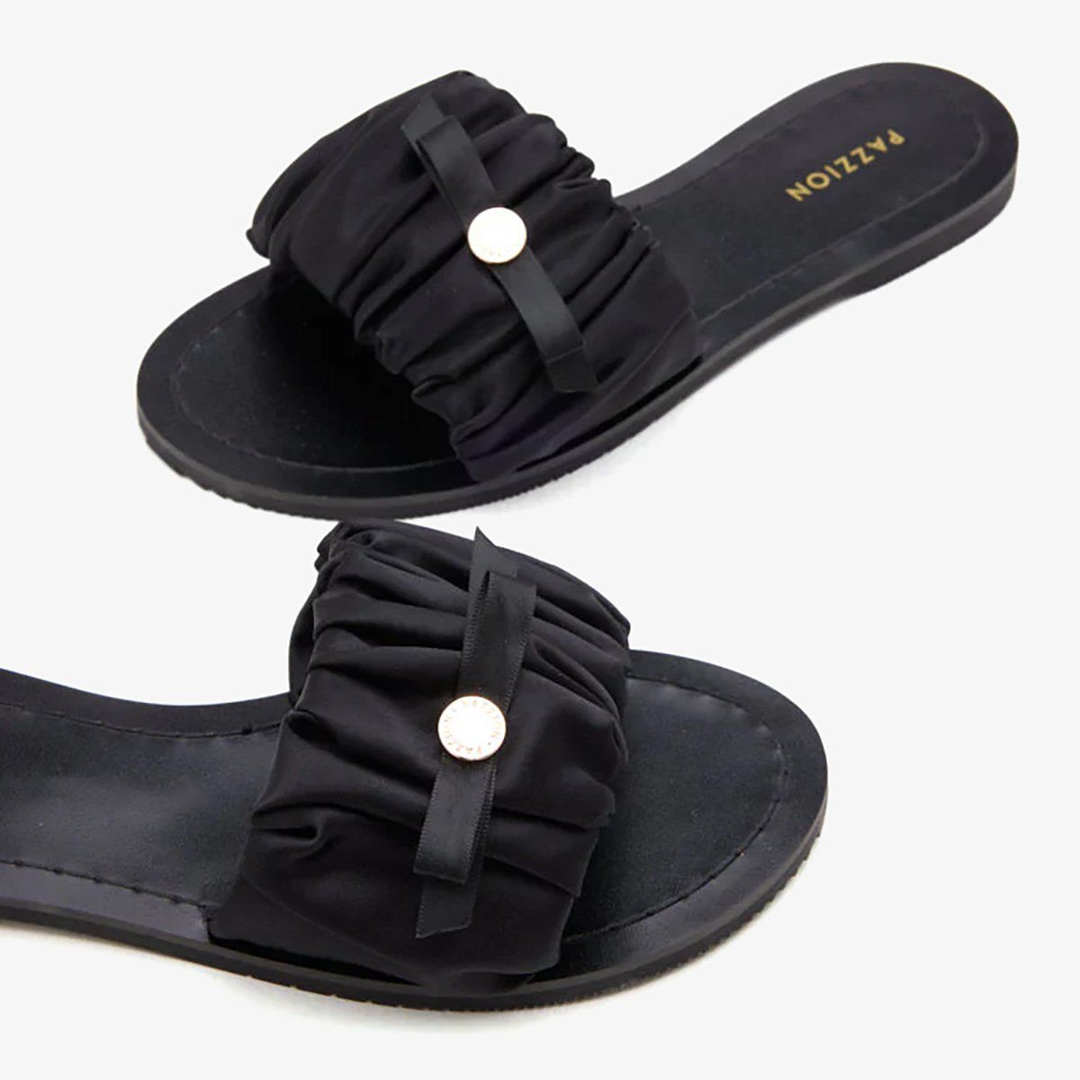Dép nữ PAZZION (B14-21) BLACK - Sải bước trong nét thanh lịch không gắng gượng với đôi slide sandals đầy tinh tế này. Được điểm xuyết bằng lớp vải satin nhún mềm mại nơi thân giày, thiết kế mang đến vẻ đẹp nữ tính, nhẹ nhàng mà không kém phần hiện đại. Có mặt trong hai gam màu thanh lịch, đen cổ điển và almond trung tính, dễ dàng kết hợp với nhiều phong cách, từ giản dị thường nhật đến những dịp chỉn chu. Đế và lót bằng cao su êm ái đảm bảo sự thoải mái suốt cả ngày dài.