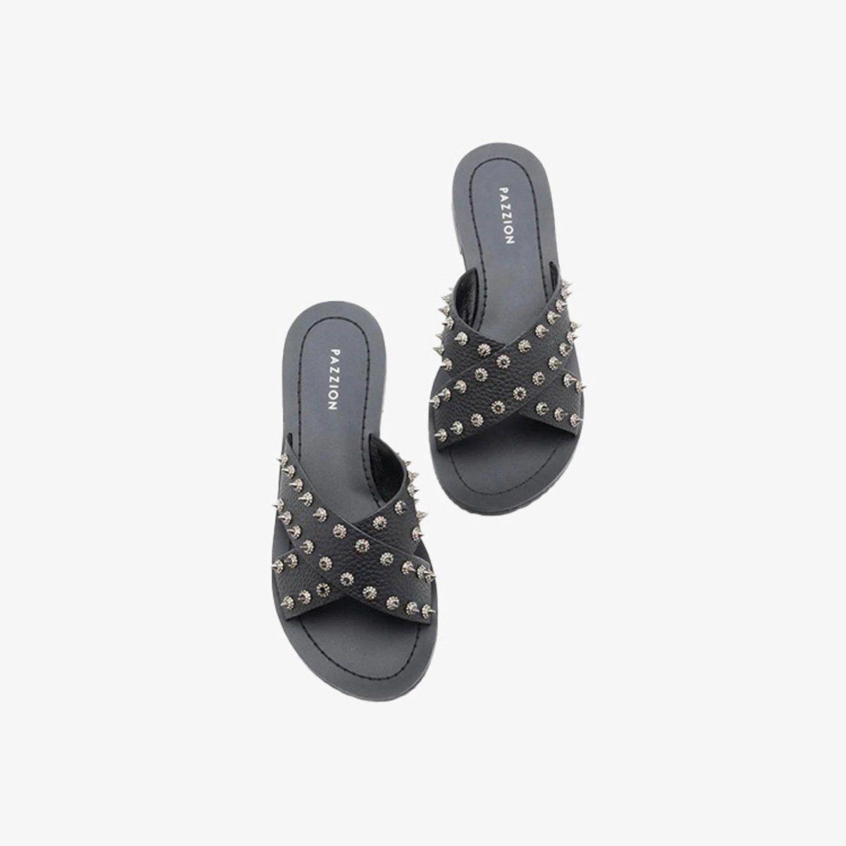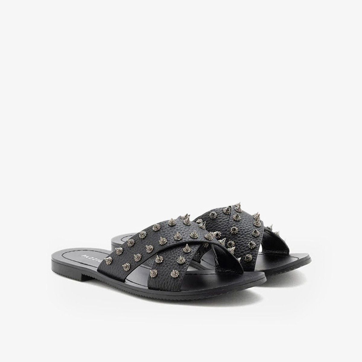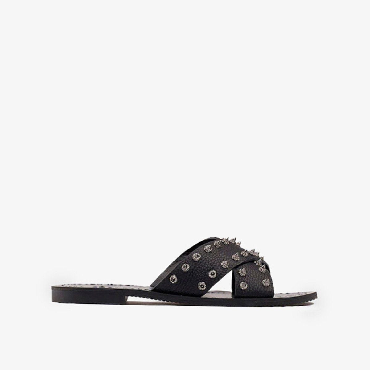 Kết hợp sự tiện dụng tự nhiên với chất liệu cao cấp. Đôi sandal này nổi bật với đế cao su êm ái và quai da bê đính đinh tán. Nàng có thể khoe đôi chân xinh xắn với mọi trang phục, từ đầm midi cho đến quần denim.