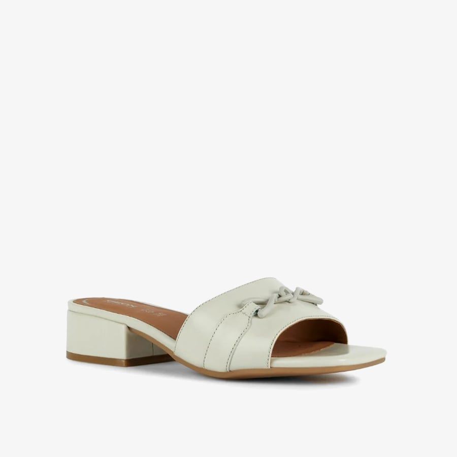 • Sandal nữ thoáng khí, nhẹ và thoải mái với gót thấp và dễ dàng sử dụng. Phiên bản cực kỳ nữ tính với tông màu trắng tinh tế này có phần trên bằng da tối giản được tô điểm bằng một họa tiết kim loại tinh tế. Thể hiện sự quyến rũ tinh tế và hiện đại.