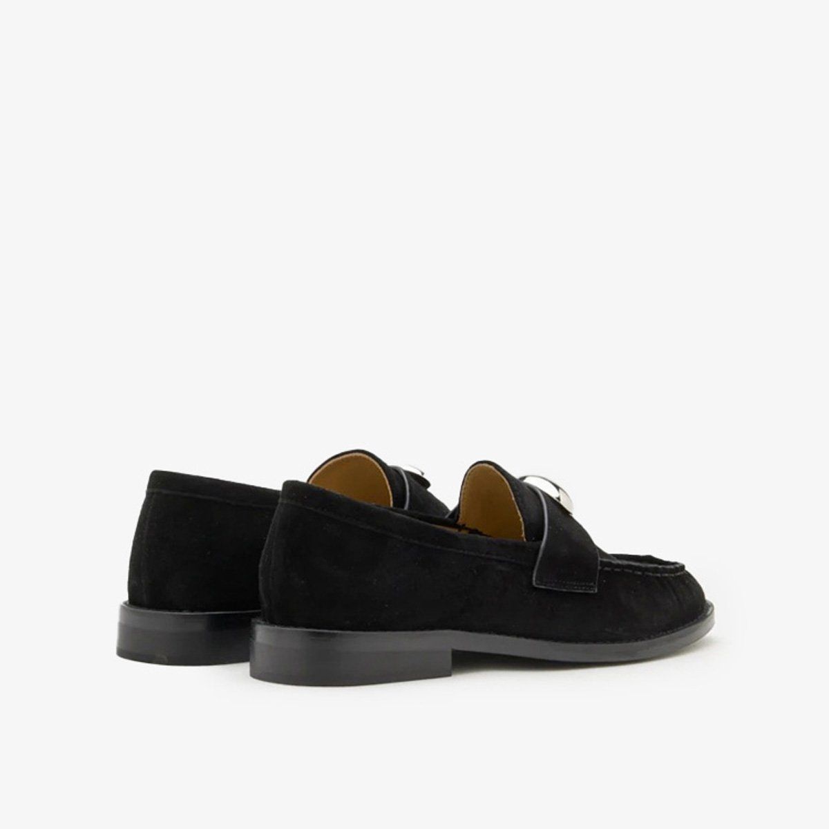 Sự giao thoa giữa nét cổ điển và đương đại hội tụ trong đôi giày lười đầy tinh tế này. Với điểm nhấn khóa kim loại tông bạc bóng bẩy cùng đường chỉ may moccasin truyền thống, đôi giày này kết hợp hoàn hảo giữa sự thoải mái và phong cách. Giày được chế tác từ da lộn cao cấp với lớp lót da cừu mềm mại và đế cao su bền chắc.
