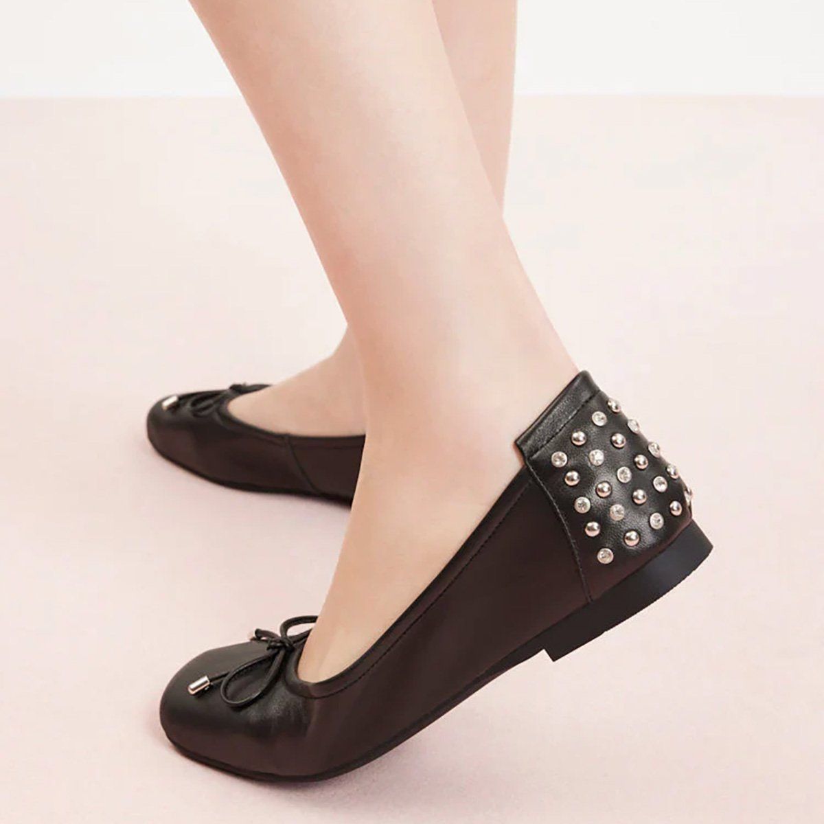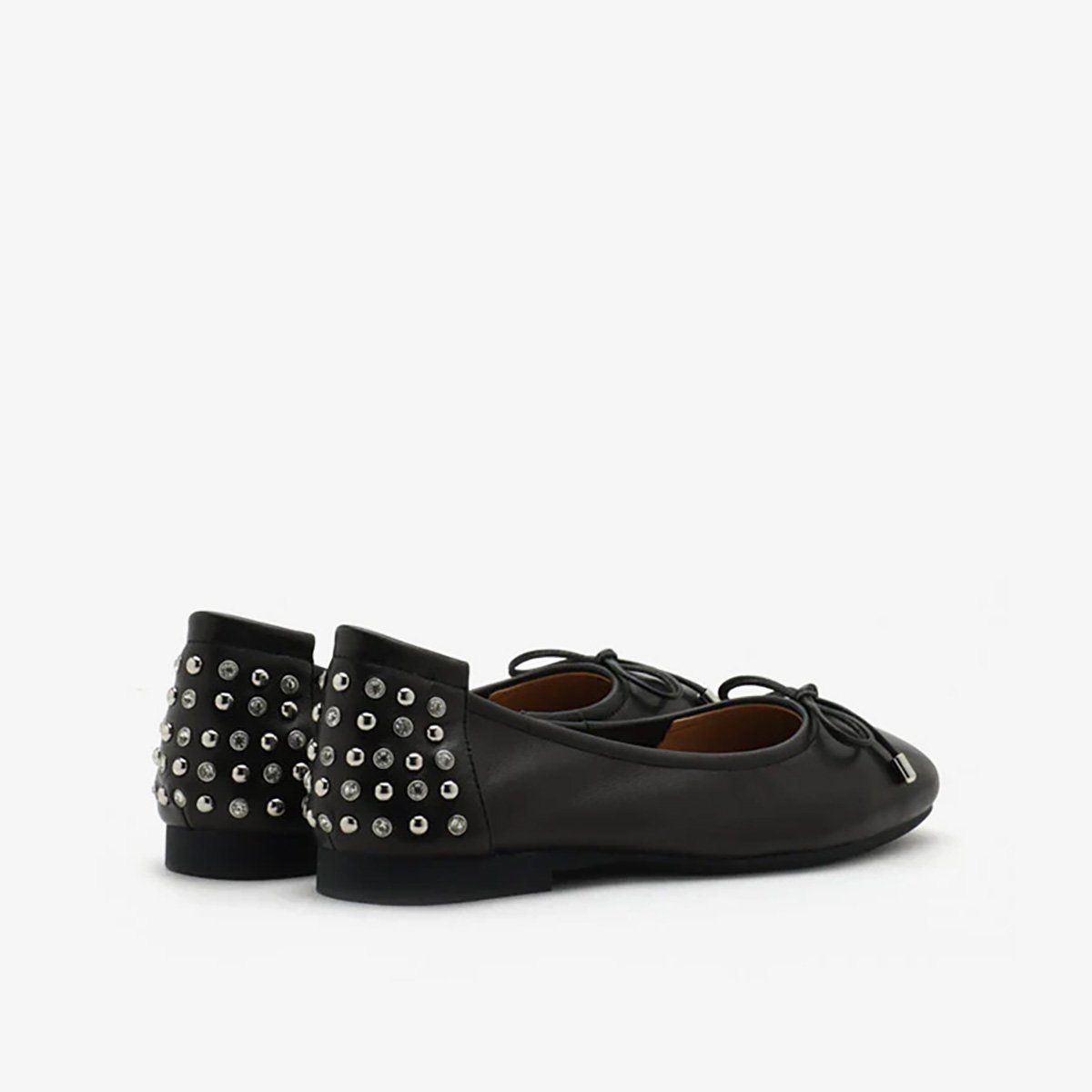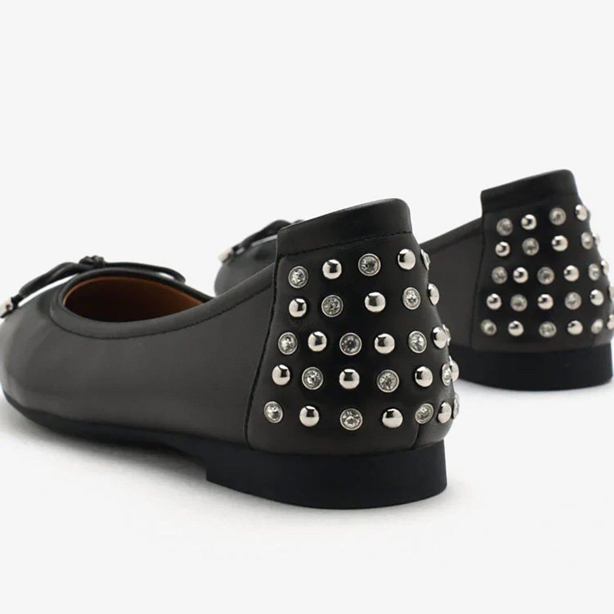 Phía sau gót được đính pha lê viền bạc và đinh tròn ánh kim, tạo nên nét lấp lánh lặng thầm nhưng cuốn hút. Đế cao su gần như vô hình hoàn thiện sự kết hợp hài hòa giữa sự thoải mái tuyệt đối và nét thanh lịch vĩnh cửu.