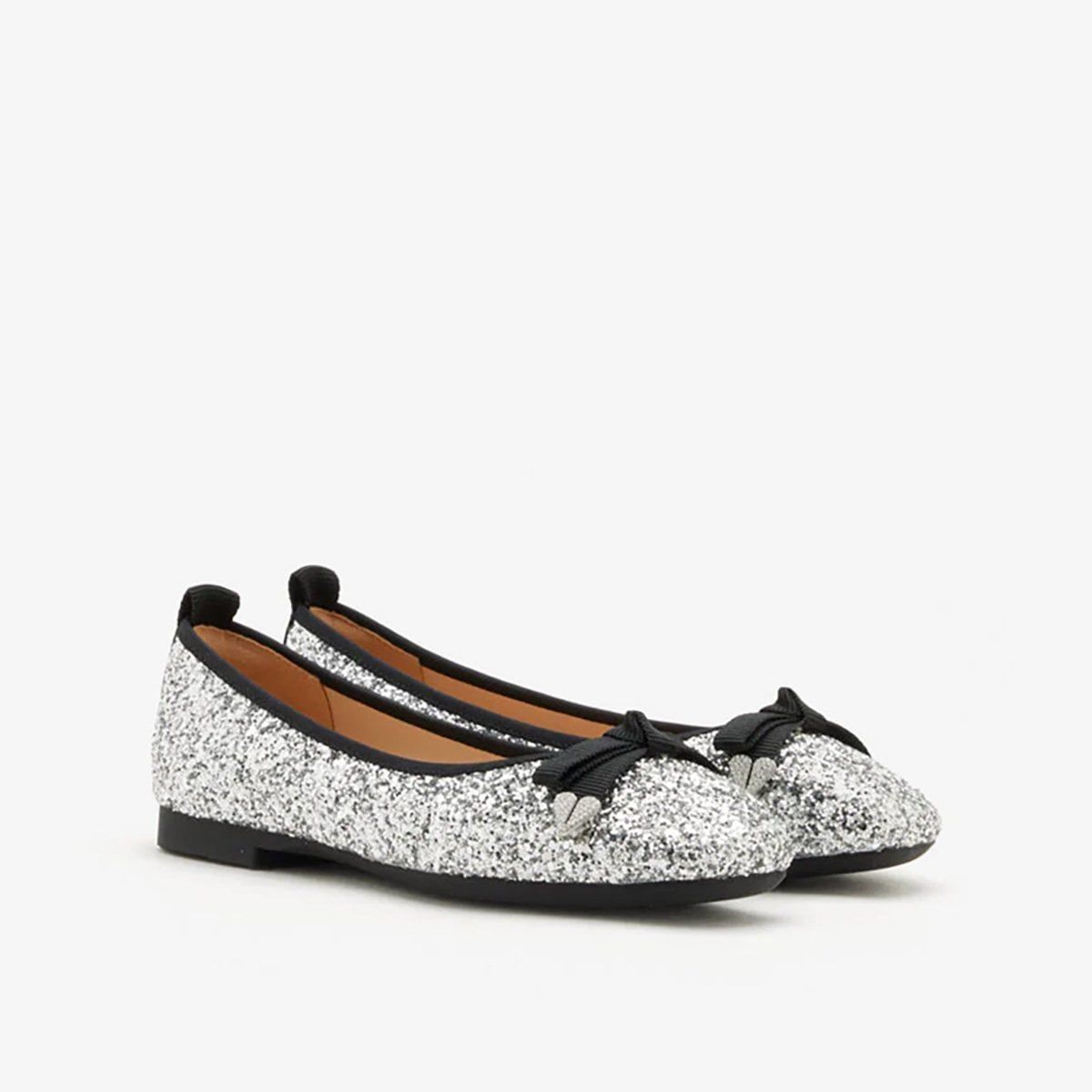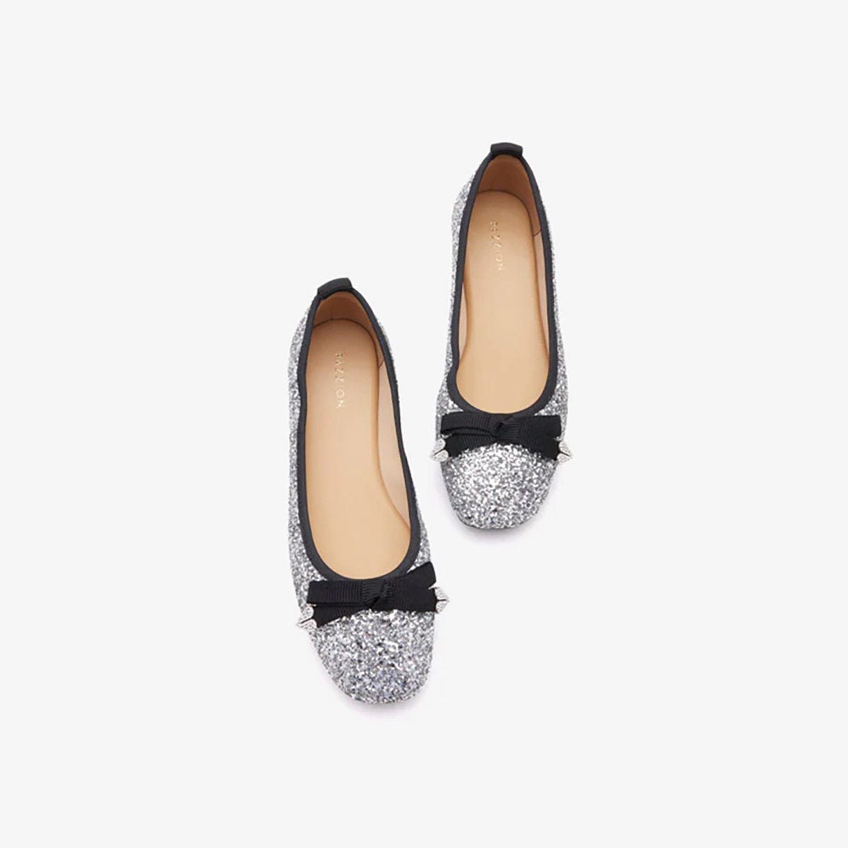Giày Ballerina PAZZION (1109-10) SILVER - Vẻ đẹp cổ điển của giày ballet được thổi làn gió mới với lớp vải ánh kim lấp lánh, tạo nên sự cuốn hút tinh tế ở từng bước chân. Chi tiết nơ nhỏ xinh điểm xuyết nét nữ tính, trong khi lót giày bằng da cừu mềm mại mang lại cảm giác êm ái tuyệt đối.
