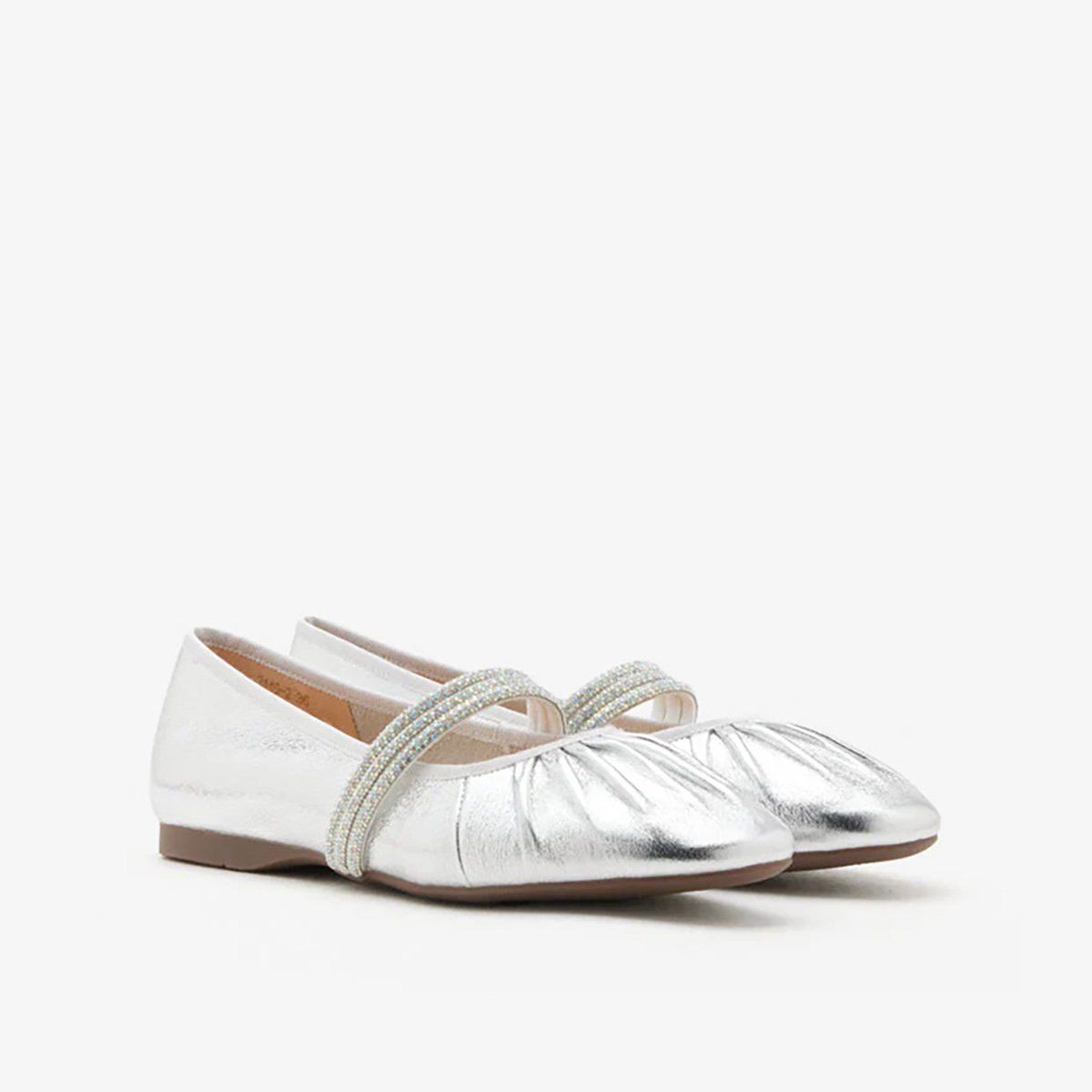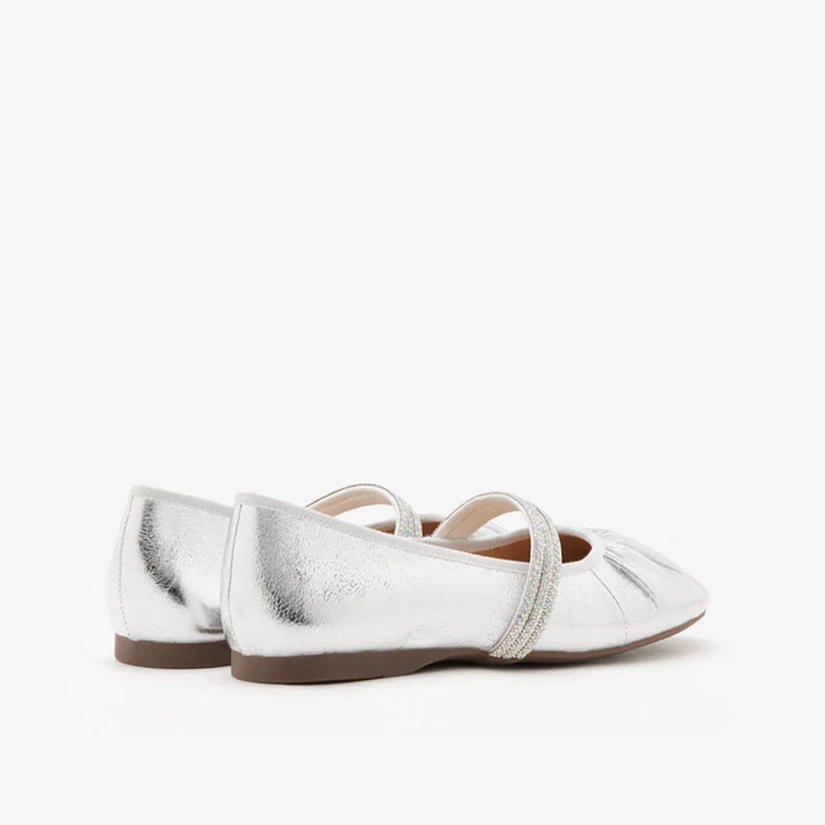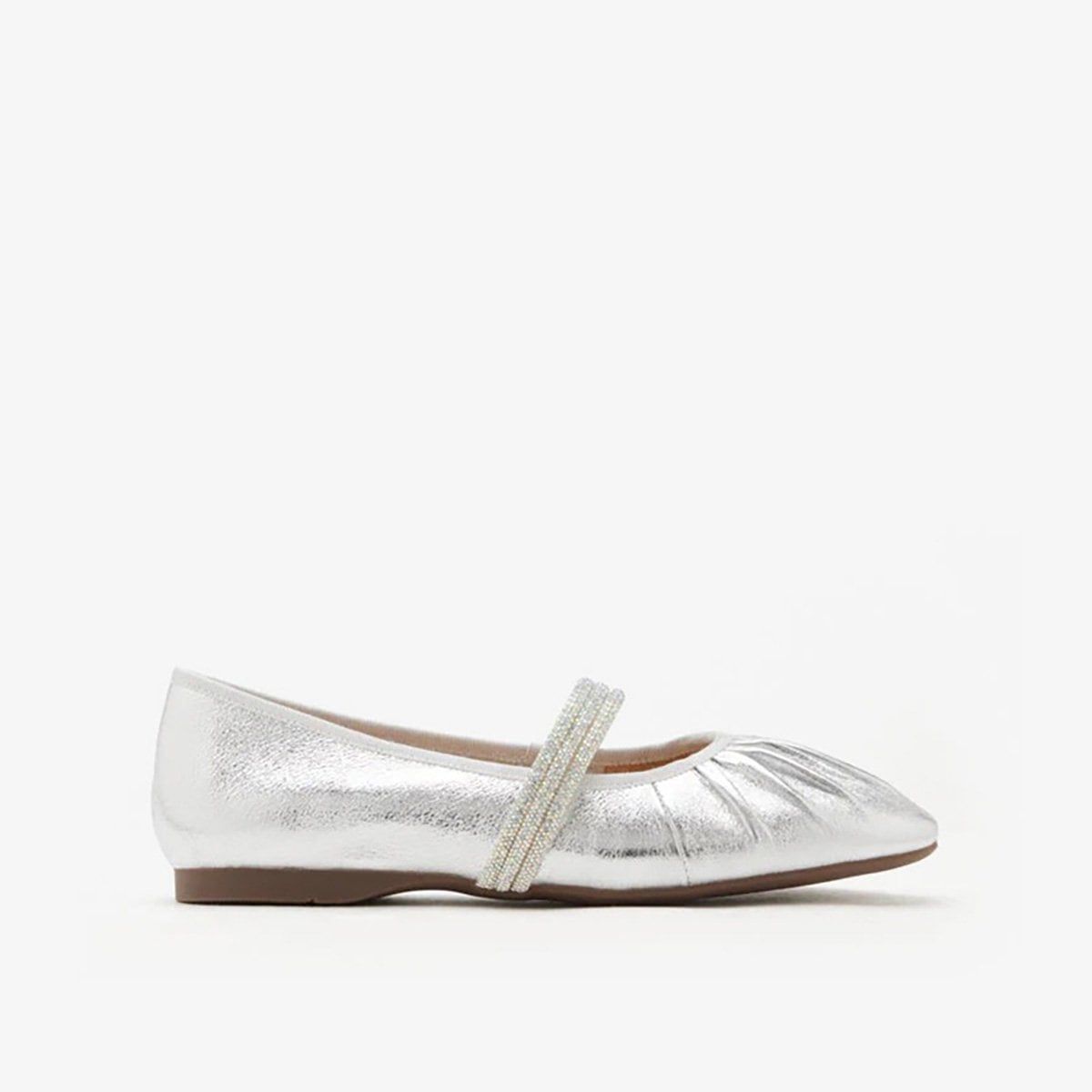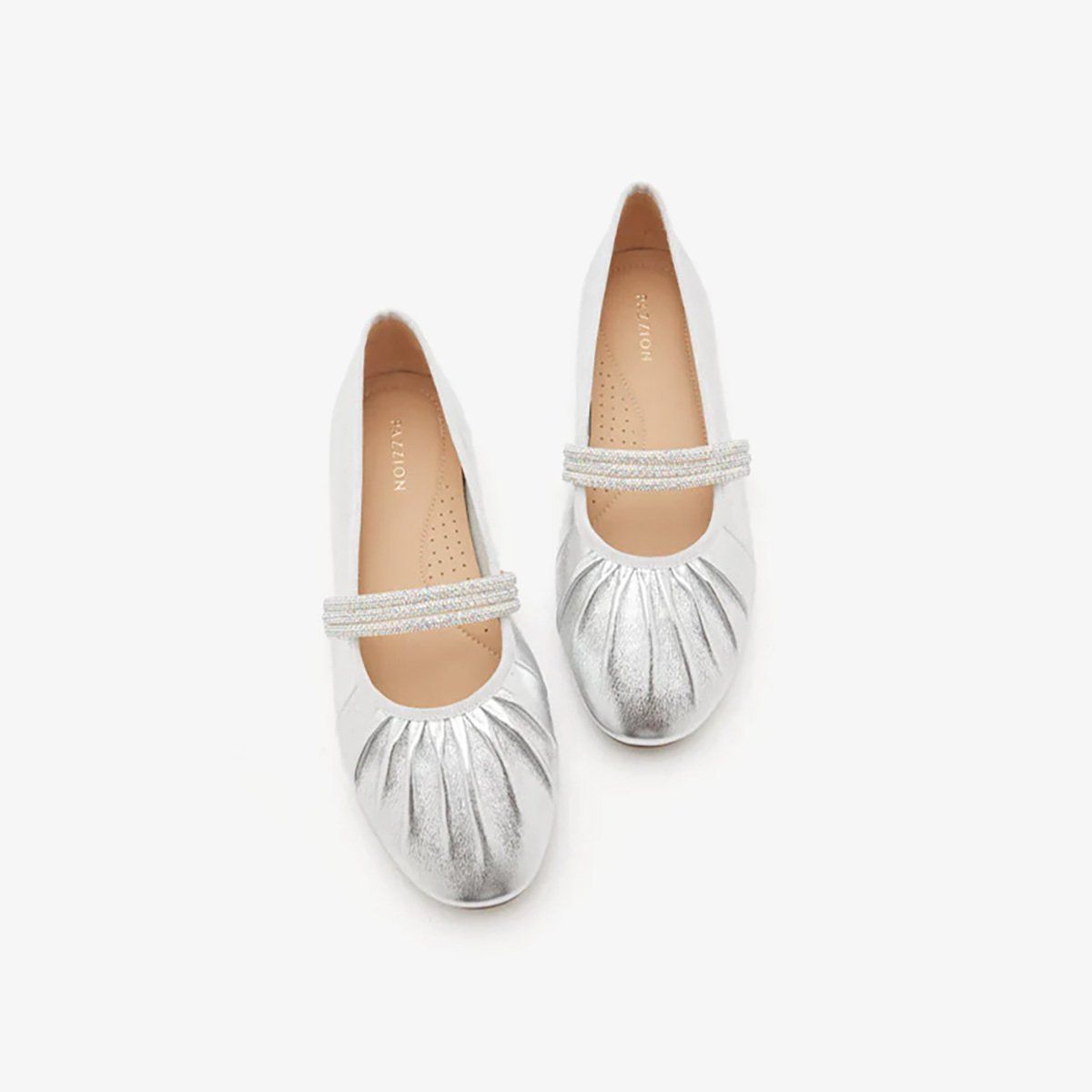 Giày Mary Jane PAZZION (2140-2) SILVER - được chế tác từ da bò mềm mại với kỹ thuật rút nhún tinh tế, ôm nhẹ bàn chân với cảm giác êm ái như lụa chạm. Thiết kế hướng đến sự thoải mái tuyệt đối và dễ dàng khi mang, nhưng vẫn nổi bật nhờ dây quai pha lê lấp lánh tựa ánh sáng khẽ lay động mỗi bước đi.