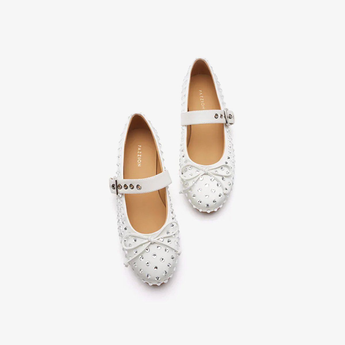 Giày Mary Jane PAZZION (226-6) BEIGE - Tạo dấu ấn riêng với đôi Mary Janes đính khoá nổi bật, phủ kín đinh pha lê lấp lánh đầy táo bạo. Có sẵn trong hai sắc màu kinh điển – đen cá tính và be thanh lịch, thiết kế được hoàn thiện với nơ nhỏ duyên dáng và quai cài đặc trưng mang lại sự chắc chắn khi di chuyển.