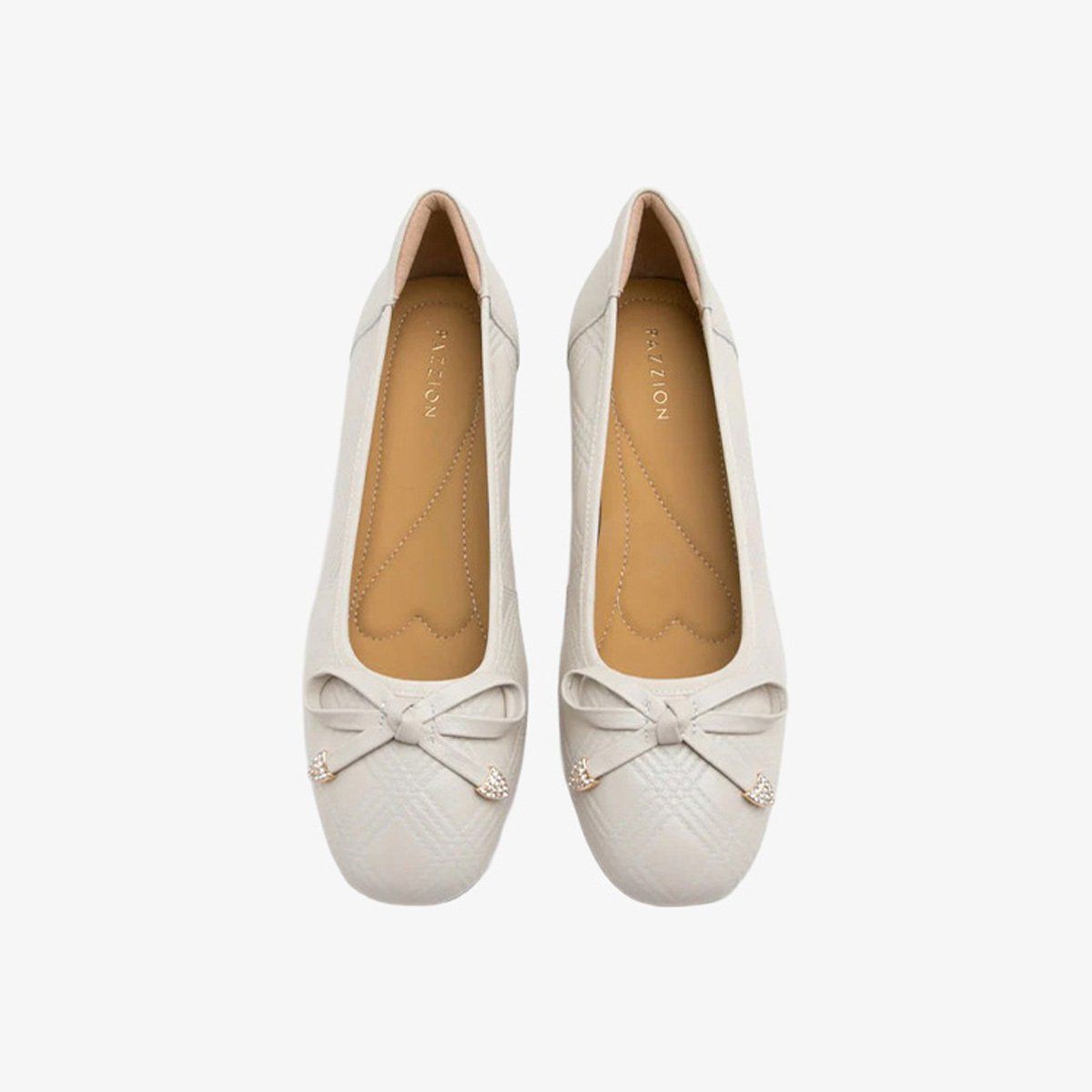 Ngọt ngào và tinh giản, đôi ballet flats trở nên duyên dáng với điểm nhấn chiếc nơ đính hai trái tim nhỏ xinh. Được chế tác từ chất liệu da bóng cùng phần đệm êm ái tinh tế, thiết kế mũi tròn cổ điển kết hợp gót 30mm mang đến sự thoải mái và thanh lịch trong từng bước chân. Gam màu trung tính dễ dàng phối hợp với hầu hết mọi trang phục trong tủ đồ của bạn.