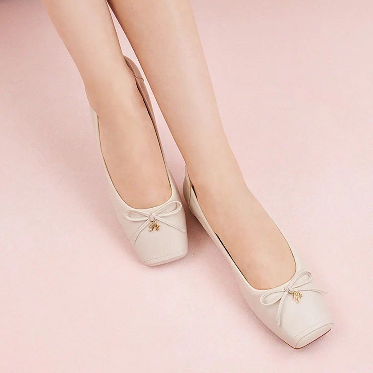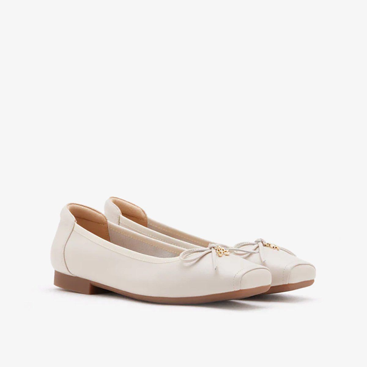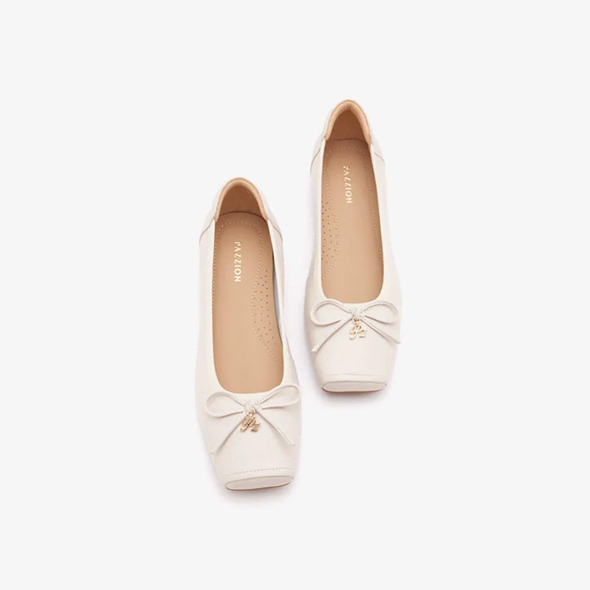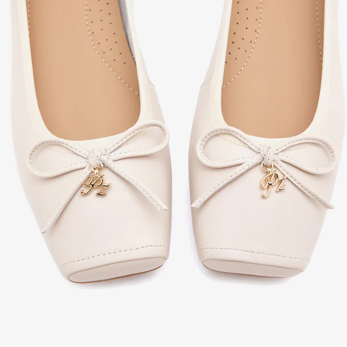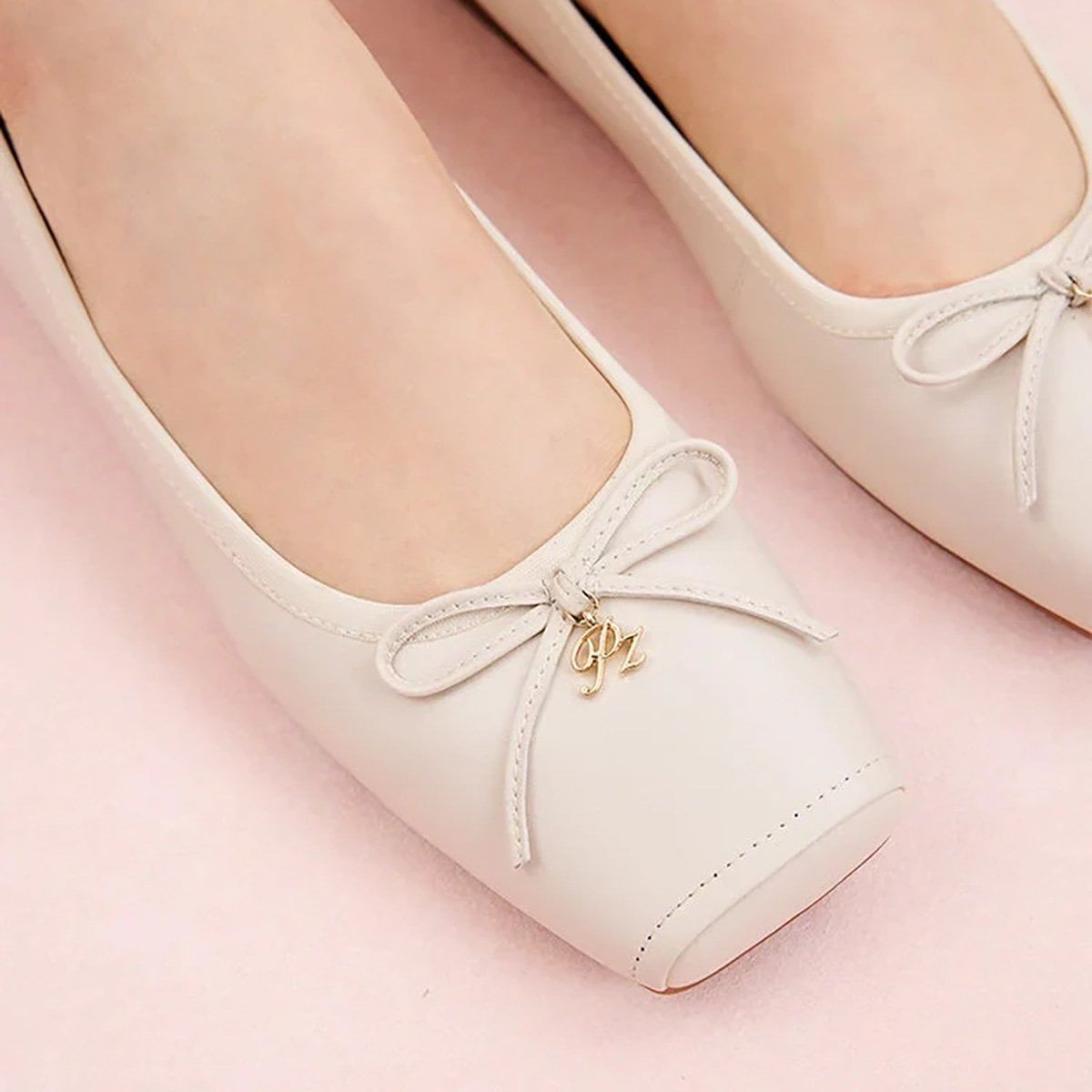 Giày Ballerina PAZZION (Q313-2) BEIGE - Sự tinh tế cổ điển được tái hiện trong thiết kế hiện đại của đôi giày ballet flats này. Với mũi vuông thanh lịch và chi tiết nơ nhỏ xinh đính charm ánh vàng sang trọng, thiết kế mang đến vẻ nữ tính nhẹ nhàng nhưng đầy phong cách.