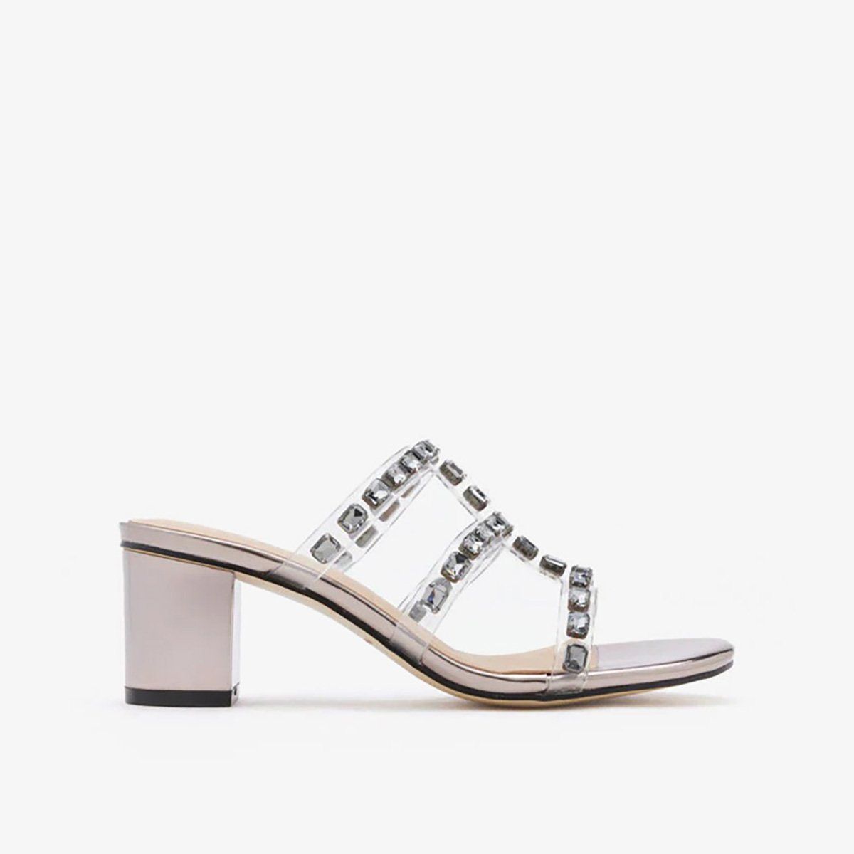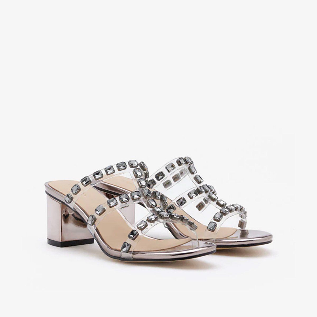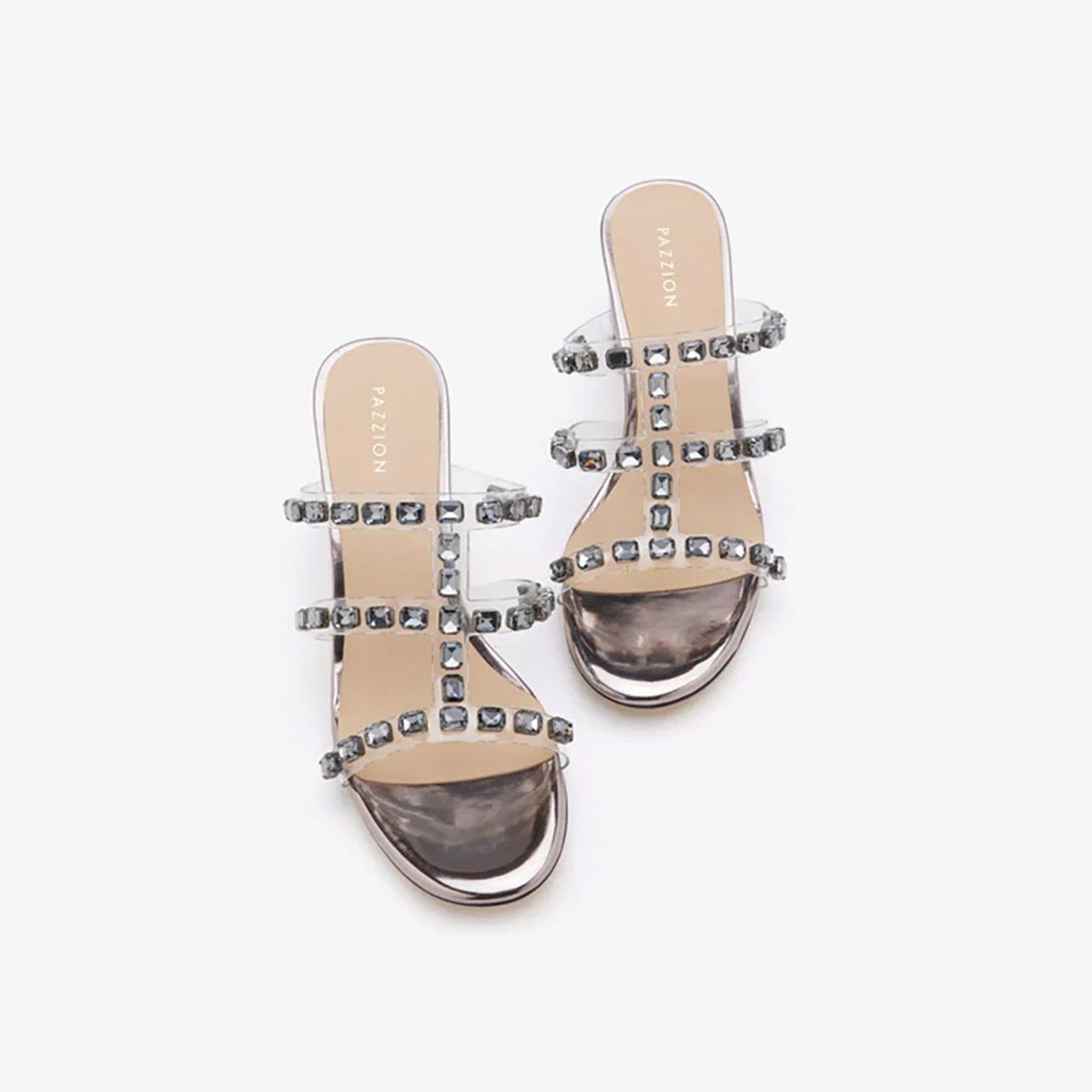 Guốc cao gót PAZZION (2408-1) PEWTER - Được lấy cảm hứng từ đôi giày thủy tinh huyền thoại, phiên bản hiện đại này mang đến vẻ đẹp mê hoặc đầy phá cách. Được chế tác từ chất liệu TPU trong suốt, phần quai sandal được đính kết pha lê lấp lánh như đang lơ lửng trên mu bàn chân, bắt sáng lung linh theo từng chuyển động.