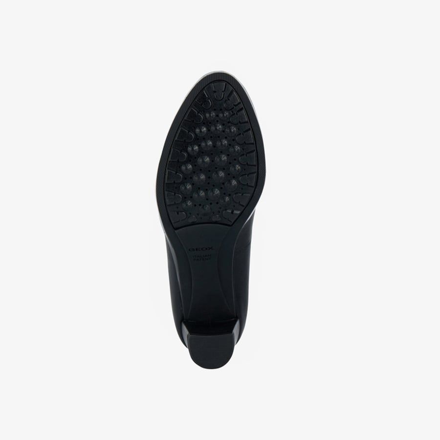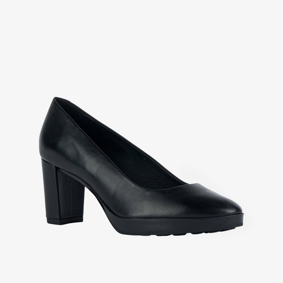 • Đôi giày cao gót có kiểu dáng sang trọng dành cho nữ với thiết kế nhẹ, và thoáng khí. Được làm từ da bò màu đen mềm mại.