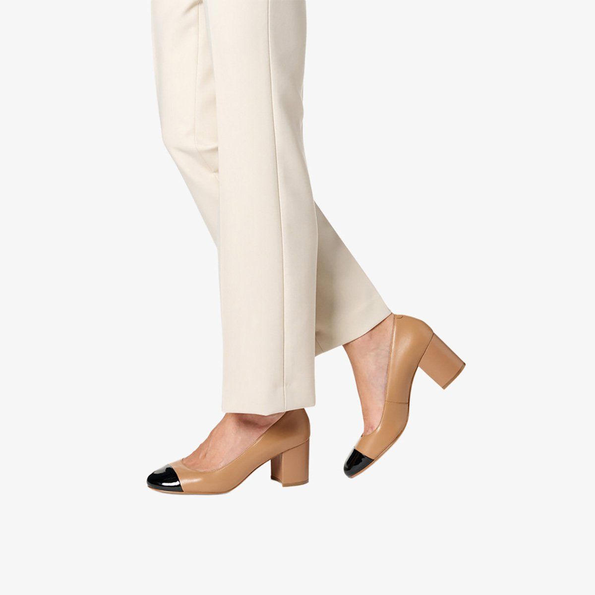 Giày cao gót phong cách hiện đại dành cho nữ, kết hợp hài hòa giữa nét thanh lịch đầy cá tính và sự thoải mái khi mang. Phiên bản tinh tế này được chế tác từ da nappa mềm mại trong bảng màu be – đen thời thượng, điểm xuyết chi tiết da bóng sang trọng. Virnilisa 65 là lựa chọn hoàn hảo để hoàn thiện phong cách nơi công sở hay những buổi dạo phố cuối tuần đầy phong thái.
