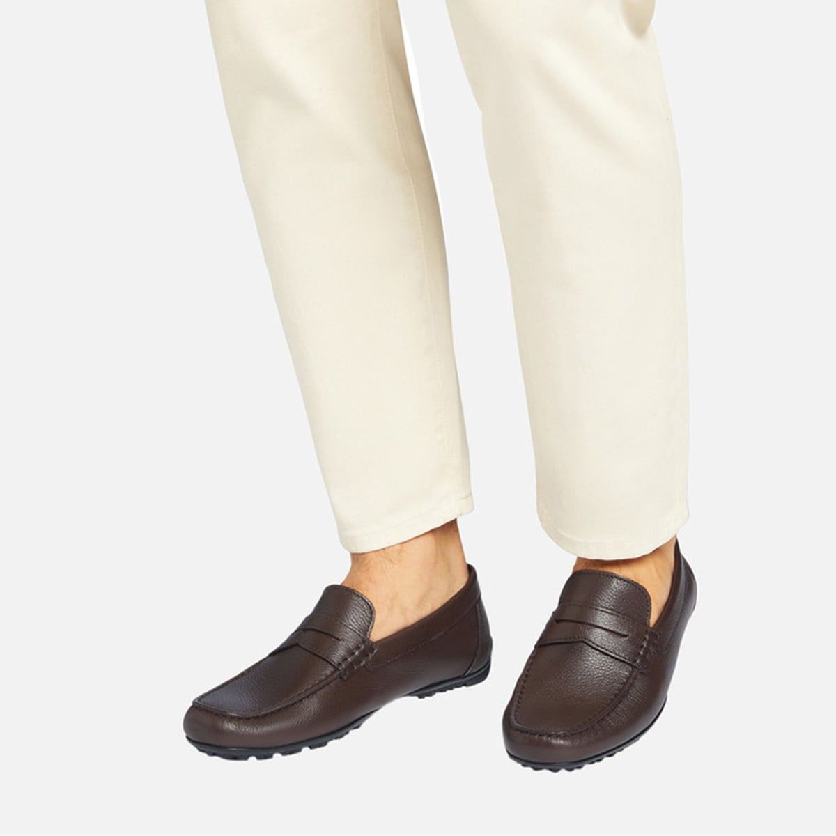 Giày lười nam mang thiết kế kinh điển, đảm bảo độ bám vượt trội ngay cả trên bề mặt ẩm ướt. Nhẹ, thoáng khí và linh hoạt, phiên bản này được chế tác từ da vân (tumbled leather) mềm mại với gam nâu đậm sang trọng, phù hợp cho phong cách đô thị hiện đại. Kosmopolis + Grip không chỉ nâng tầm outfit thường ngày mà còn hoàn thiện vẻ ngoài chỉn chu cho những dịp trang trọng.