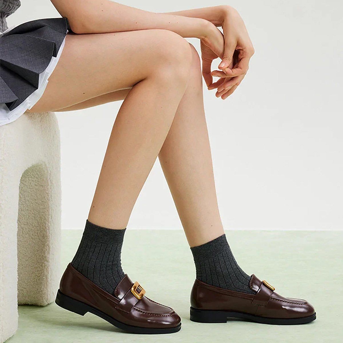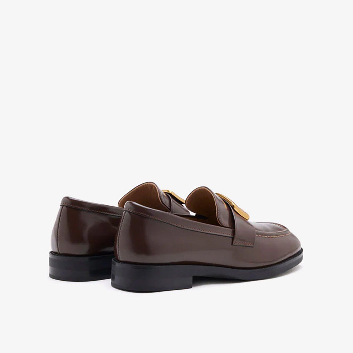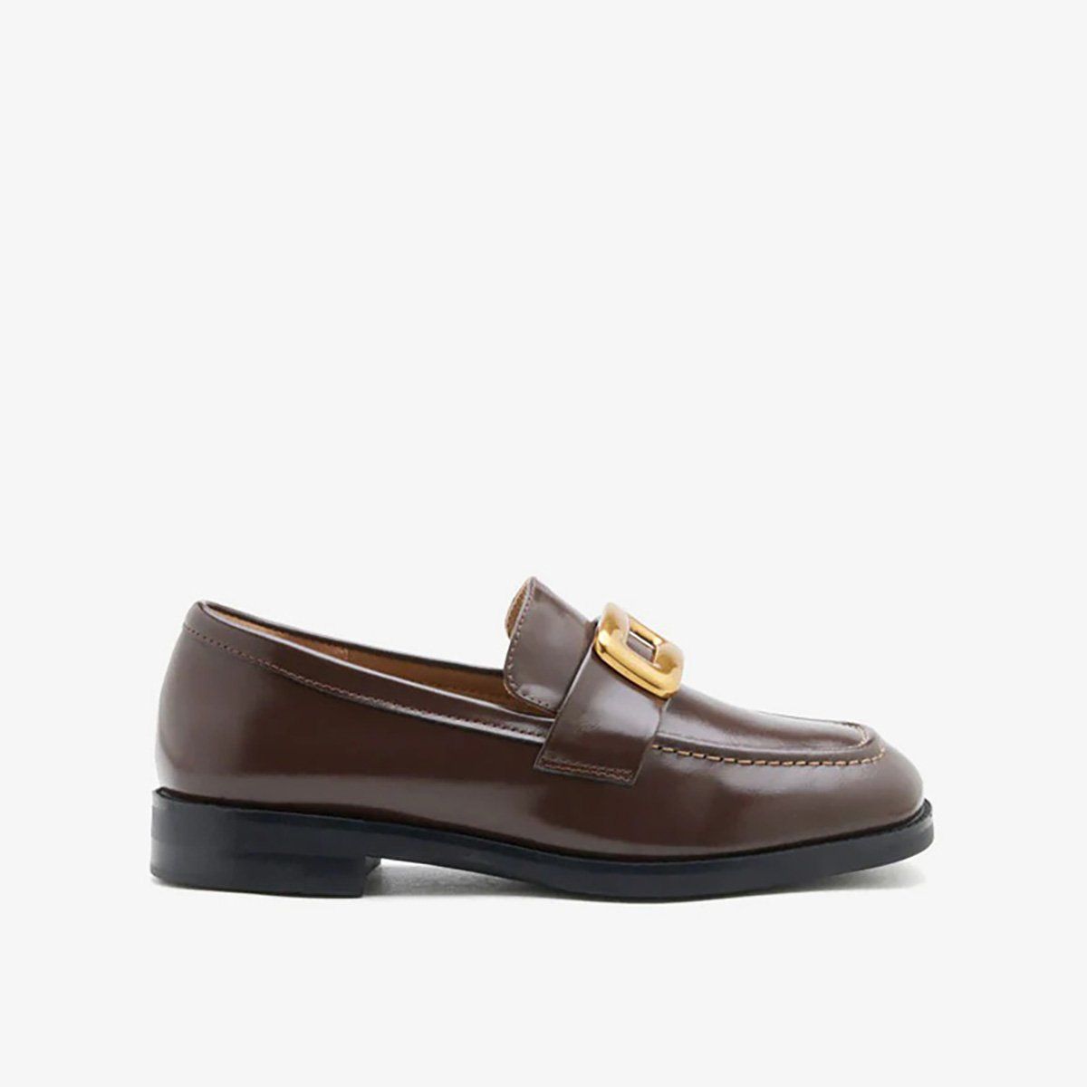Giày Loafer PAZZION (533-2) DARK BROWN - Sở hữu phom mũi vuông sắc sảo và điểm nhấn khóa vàng bản lớn, đôi loafers này mang đến vẻ đẹp thanh lịch hiện đại, gợi nhớ tinh thần cổ điển tinh tế.