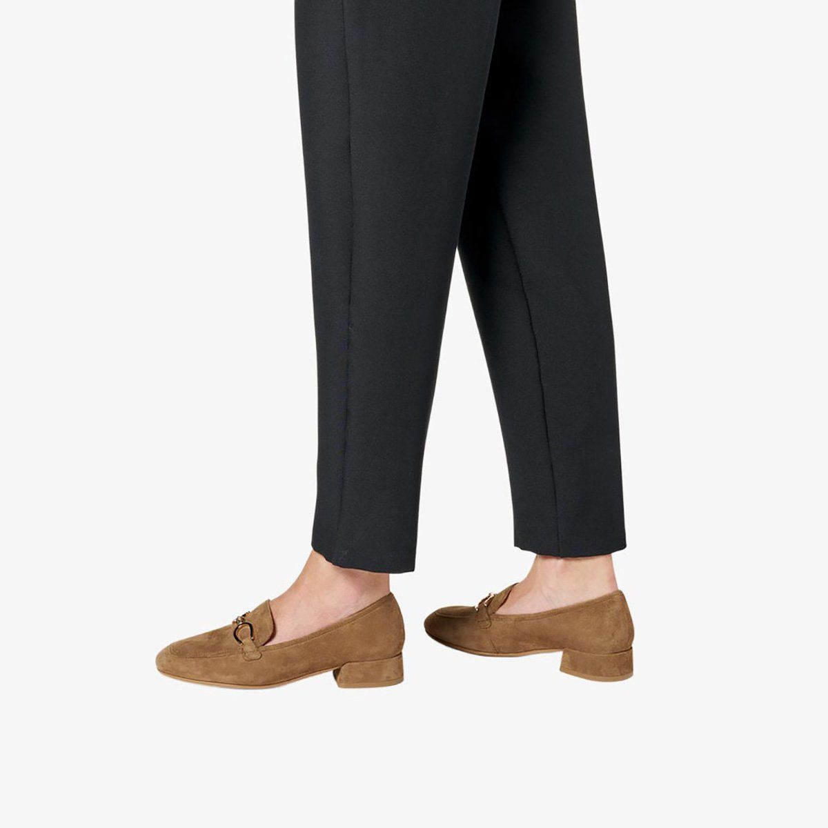 Giày loafer nữ mang diện mạo hiện đại với phom dáng thanh thoát, tôn lên phong cách đô thị bằng nét tinh tế đầy cuốn hút. Phiên bản này được chế tác từ da lộn mềm mại trong tông nâu đất sang trọng, dễ dàng phối hợp với mọi trang phục. Dhyalma là phụ kiện thanh lịch, đồng hành hoàn hảo cho những ngày dạo phố, đi làm hay cả những dịp cuối tuần thoải mái.