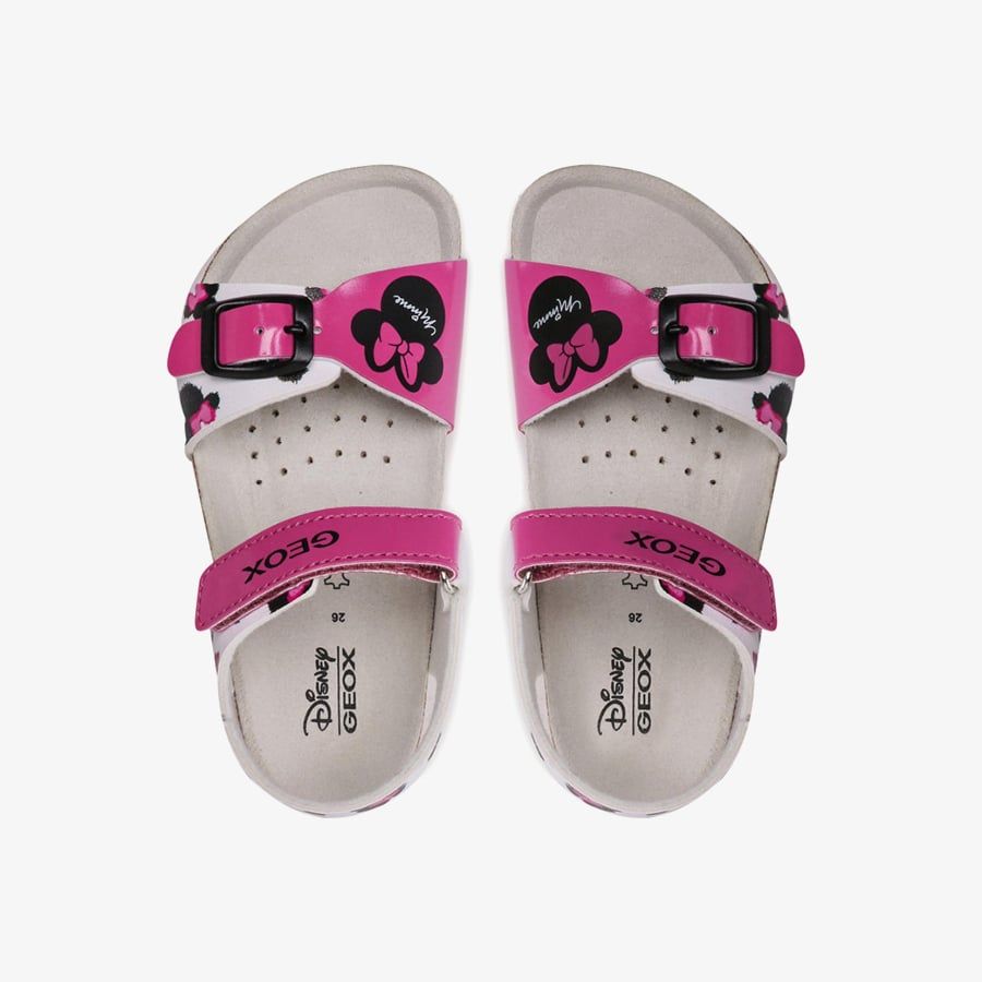 • Giày sandal bé gái lấy cảm hứng từ nhân vật hoạt hình trong Disney. Nhẹ và thoải mái hoàn hảo cho trang phục hàng ngày. Với phiên bản sandal Adriel này được lấy cảm hứng từ nàng chuột Minnie chắc chắn sẽ làm hài lòng các bé gái. Đây là sản phẩm hợp tác giữa Geox và Disney, được làm từ chất liệu da và giả da với thiết kế màu hồng và màu trắng nhẹ nhàng mang đến một vẻ ngoài ngọt ngào vô cùng dễ thương.