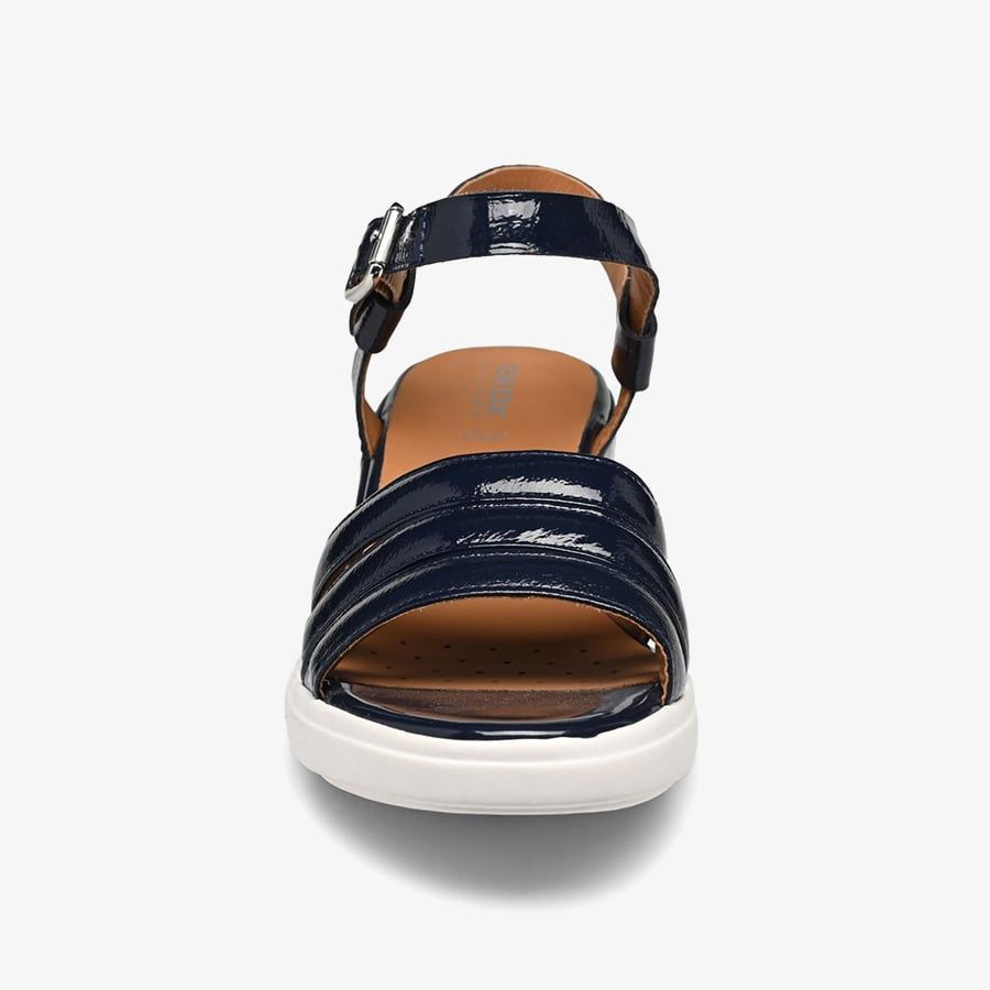 • Mẫu thiết kế giày sandal nữ nhẹ và thoáng khí có đế thấp, chứa đầy sự hấp dẫn giản dị và năng lượng tích cực, được làm từ da màu Xanh navy. Phiên bản tinh tế này có phần dây cài ngang mắt cá chân toát lên vẻ sành điệu. Với ý tưởng từ phong cách thành thị, nữ tính nhưng không kém phần thoải mái, đây là đôi Sandal hoàn hảo để phối với mọi trang phục của bạn trong mùa hè này.