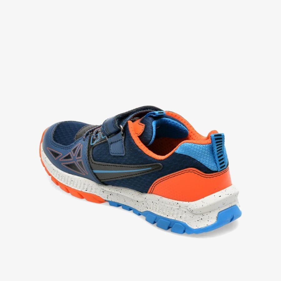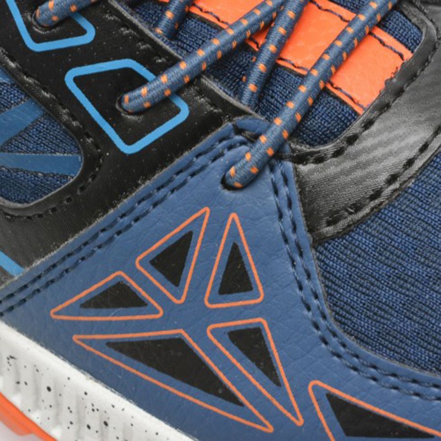 Giày sneaker trẻ em này có thiết kế thoải mái thoáng khí, tông màu năng động. Phiên bản với tông màu xanh dương và màu cam, được làm từ chất liệu vải dệt kết hợp với da tổng hợp giúp tang độ thoáng khí và thoải mái cho con khi hoạt động cả ngoài trời. Khán dán và giây bược giúp bé thoải mái mang hoạt động và phù hợp cả đi học và đi chơi.