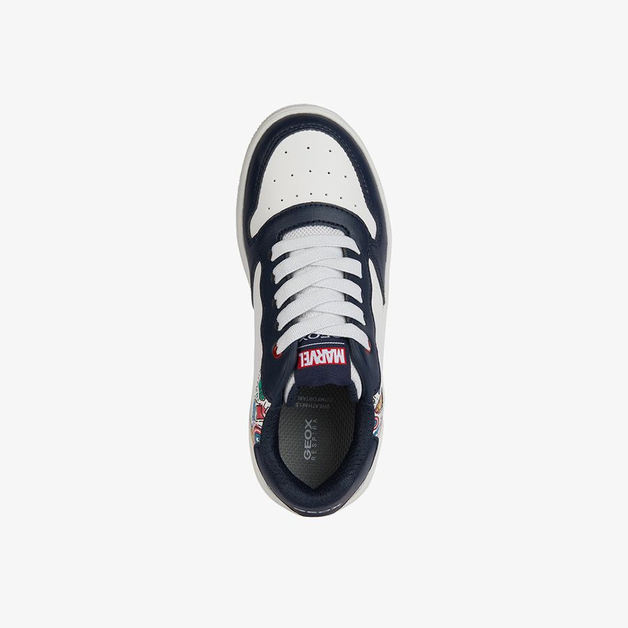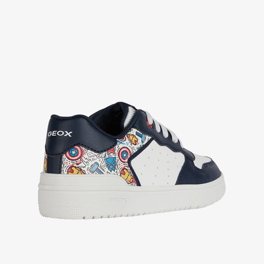 Geox Washiba C là một sự kết hợp giữa Geox và Marvel, phiên bản này có thiết kế được lấy cảm hứng từ các nhân vật trong Avengers. Giày được kết hợp từ màu trắng và màu xanh navy, họa tiết trên đôi giày chắc chắn sẽ chiều lòng những người hâm mộ nhỏ tuổi.