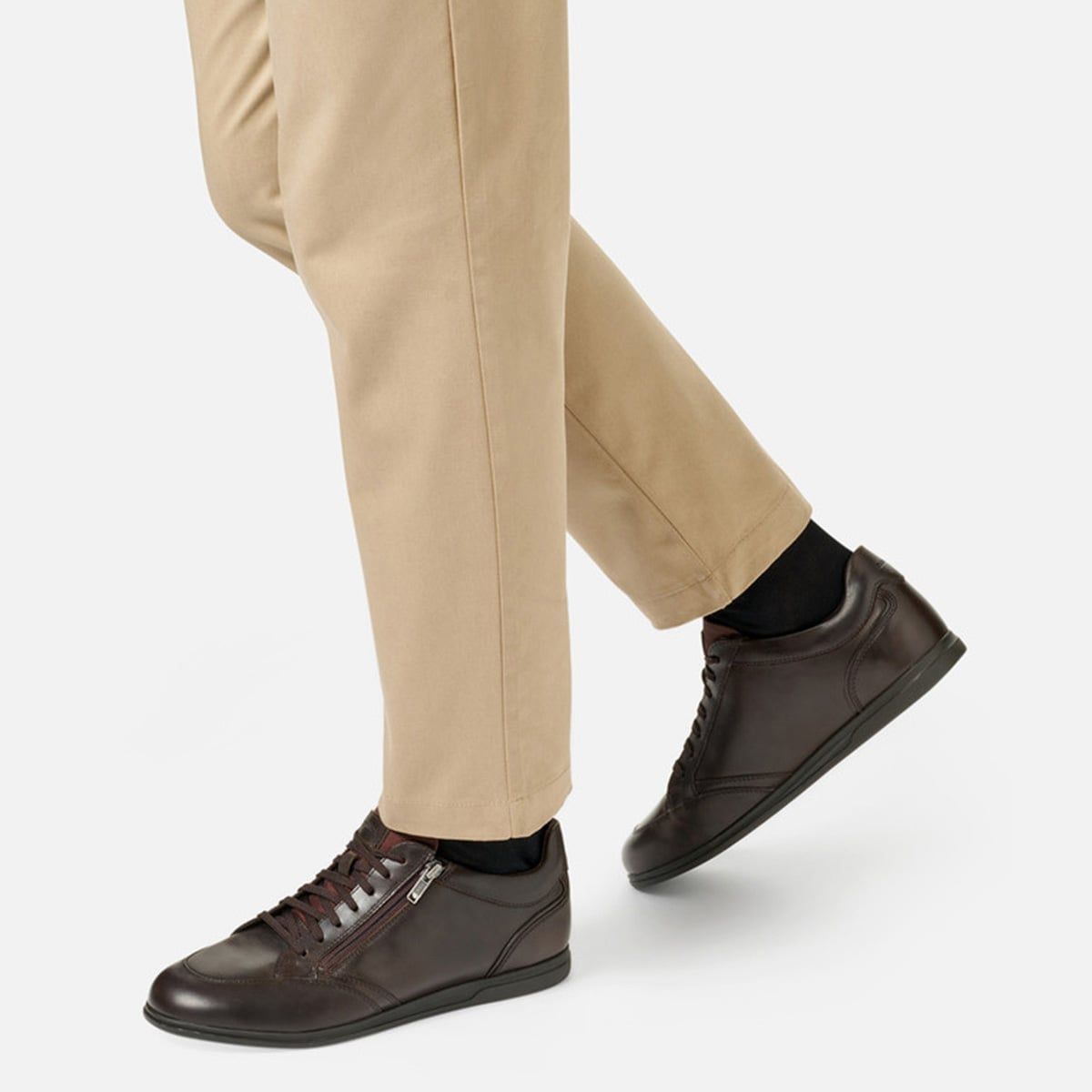 Sneaker nam cổ thấp với thiết kế khóa kéo bên hông tiện lợi, giúp mang giày nhanh chóng và dễ dàng, đồng thời đảm bảo sự thoải mái tối ưu trong suốt ngày dài. Sản phẩm được chế tác từ da cao cấp mềm mại với gam nâu đậm sang trọng, kết hợp các chi tiết tương phản tinh tế, tạo điểm nhấn hiện đại. Renan là lựa chọn hoàn hảo để hoàn thiện phong cách đô thị thường ngày với nét thanh lịch đầy cuốn hút.