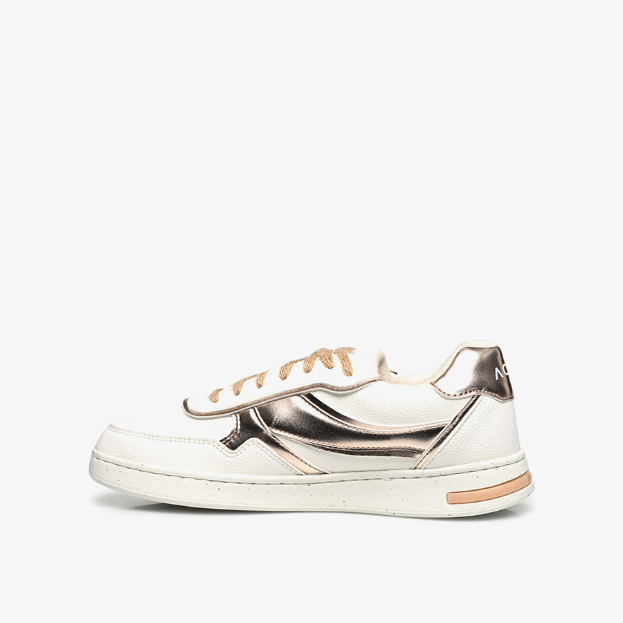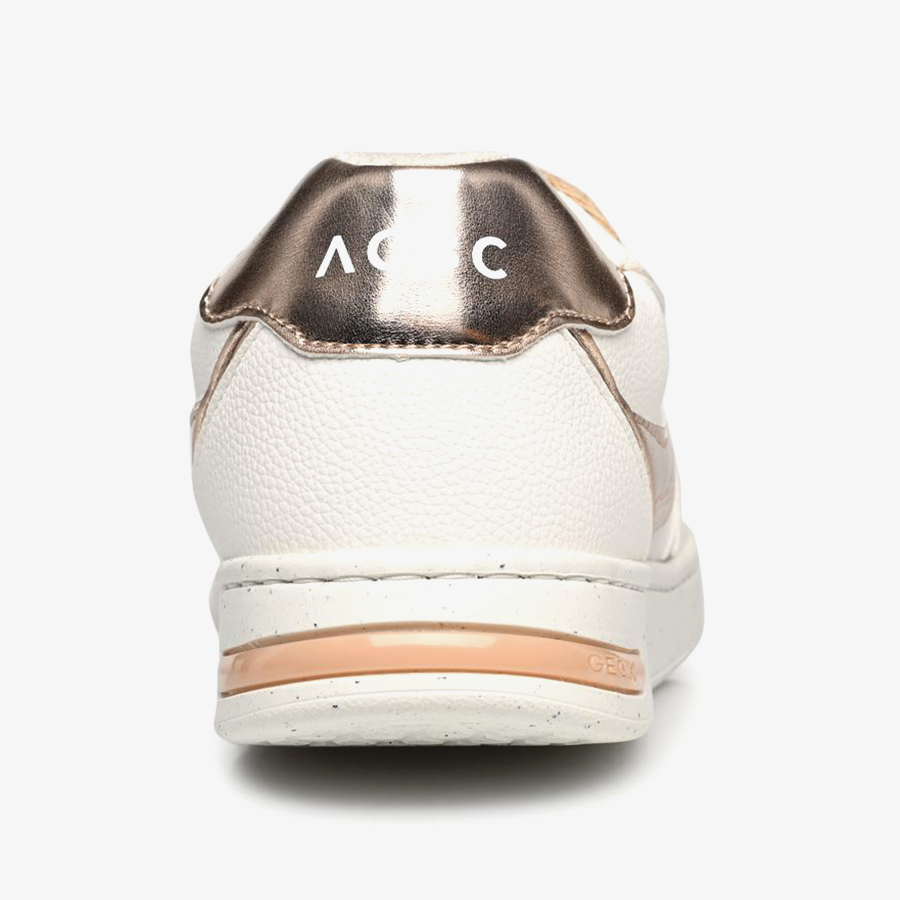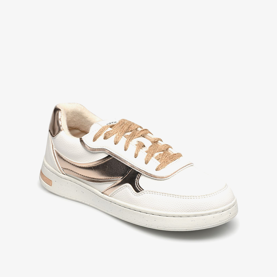 Chế tác từ vật liệu nhân tạo giả da và giả da lộn, Jeysen là phiên bản với 2 tông màu đặc biệt trắng/hồng gold được phối hài hòa trong bộ sưu tập phong cách capsule được giới thiệu từ sự kết hợp giữa Geox và ACBC, một công ty hàng đầu trong thị trường giày dép thân thiện với môi trường. Với phong cách thể thao tennis, mẫu thiết kế này hoàn hảo để nâng cao vẻ ngoài thường ngày của bạn bằng sự rung động nguyên bản theo xu hướng. Đôi giày này được tạo nên bởi chất liệu tái chế hữu cơ không có nguồn gốc động vật, đi kèm 2 dây buộc thân thiện môi trường khác nhau – một bằng sợi đay có thể tái chế hoàn toàn và một bằng ReBotilia, một loại chất liệu có nguồn gốc từ chai PET tái chế.