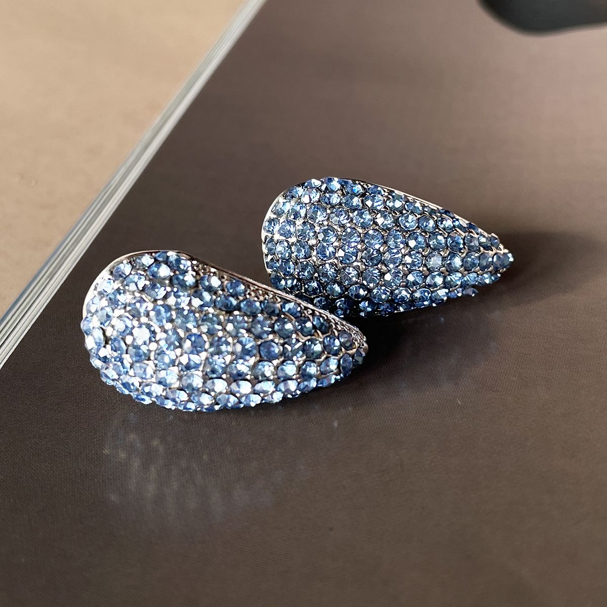 Gây ấn tượng với thiết kế bề mặt phủ kín đá xanh biển lấp lánh. Kiểu dáng dáng nụ gọn gàng nhưng vẫn đầy thu hút, tạo nên hiệu ứng ánh sáng cuốn hút ở mọi góc nhìn.
