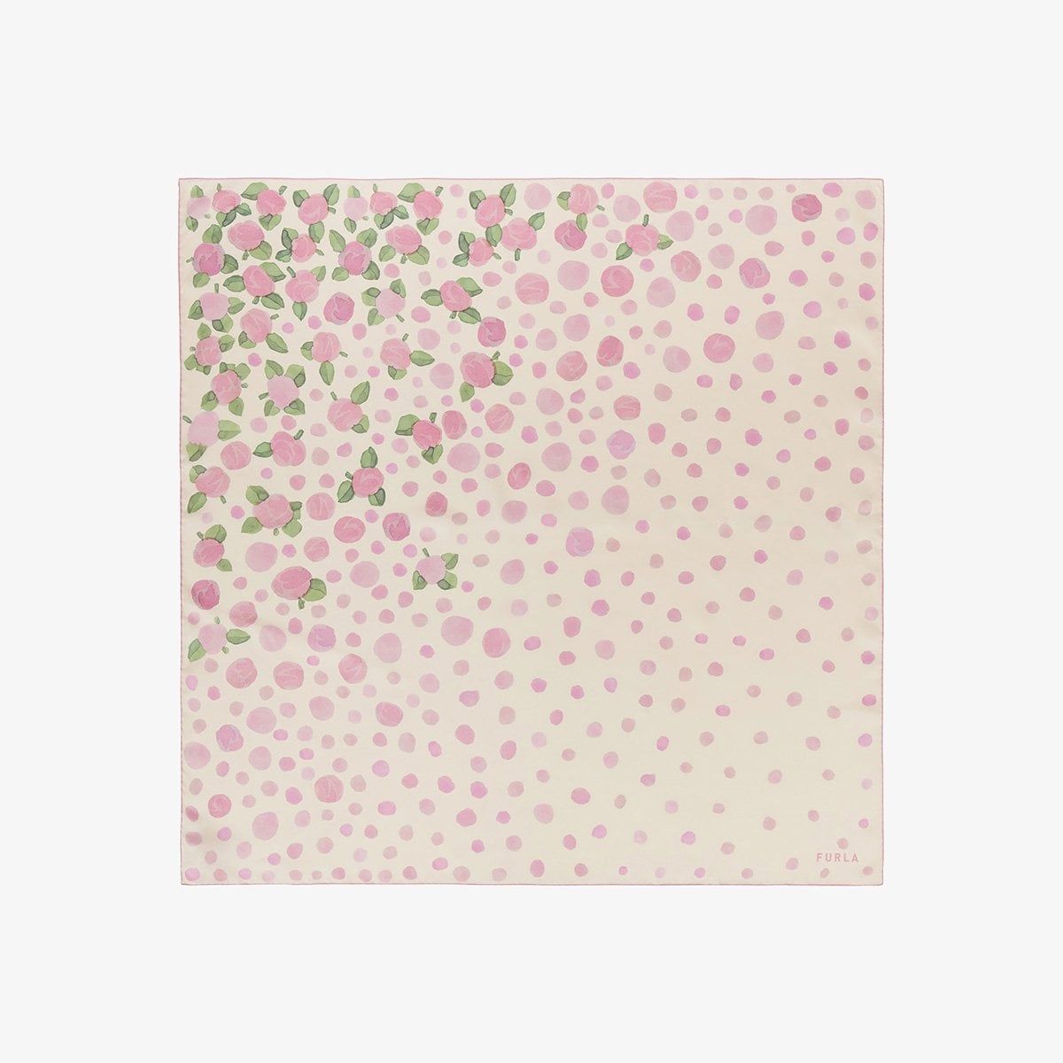 Hoàn hảo để khoác nhẹ quanh cổ hoặc bờ vai, khăn vuông Furla Tortona mang đến nét chấm phá đầy tinh tế cho phong cách thường ngày. Được chế tác từ chất liệu lụa twill mềm mượt, chiếc khăn gây ấn tượng với họa tiết hoa hồng nhỏ nhắn, kết hợp cùng hiệu ứng chấm bi chuyển sắc độc đáo – gợi cảm hứng giao thoa giữa vẻ đẹp cổ điển và hơi thở hiện đại.