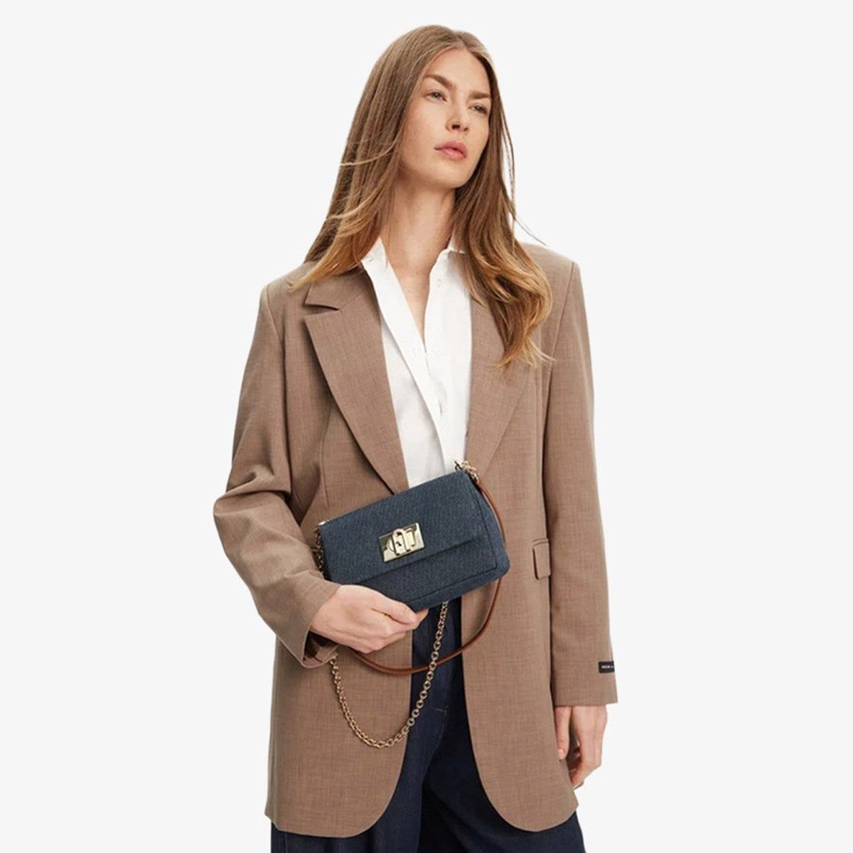 Túi đeo chéo mini Furla 1927 được chế tác từ chất liệu cotton cao cấp, kết hợp dây đeo da điểm xuyết mắt xích kim loại tinh tế. Kiểu dáng nhỏ gọn, thanh lịch, có thể sử dụng linh hoạt như túi đeo vai hay túi đeo chéo. Điểm nhấn của thiết kế nằm ở khóa xoay kim loại khắc logo Furla, vừa mang tính biểu tượng, vừa đảm bảo sự tiện dụng và an toàn khi sử dụng.