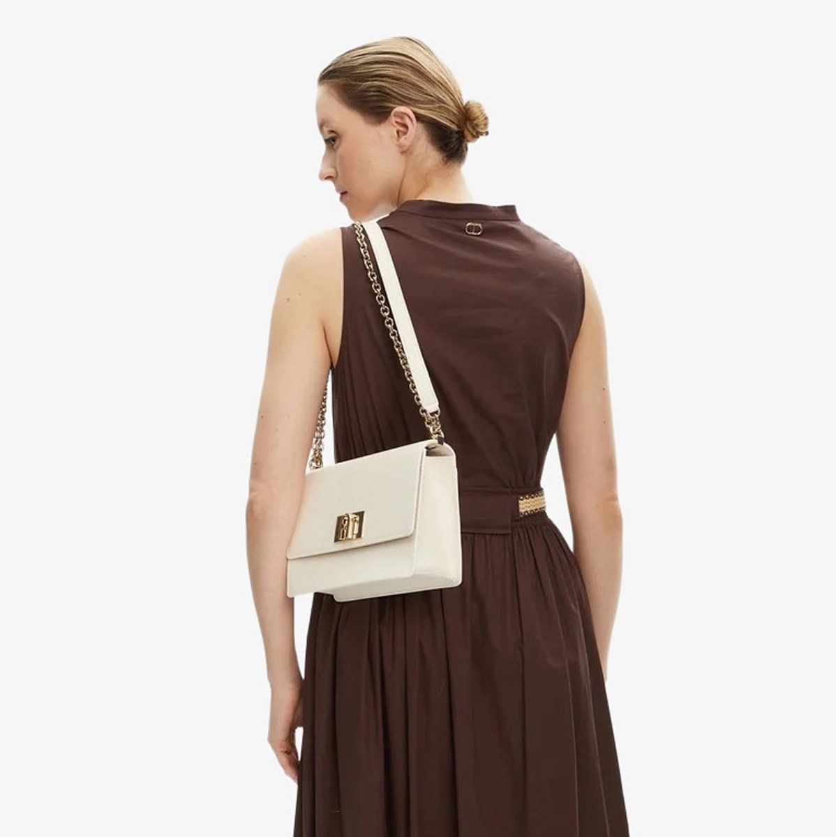 Furla 1927 là chiếc túi đeo chéo nhỏ gọn, được chế tác từ chất liệu da vân sang trọng, kết hợp dây đeo da điểm xuyết mắt xích kim loại tinh tế. Thiết kế thanh lịch dễ dàng biến tấu như túi đeo vai, nổi bật với khóa xoay kim loại khắc logo Furla mang tính biểu tượng – vừa tinh tế, vừa tiện dụng. Túi còn được trang bị ngăn mở phía sau, giúp bạn nhanh chóng lấy những vật dụng cần thiết.