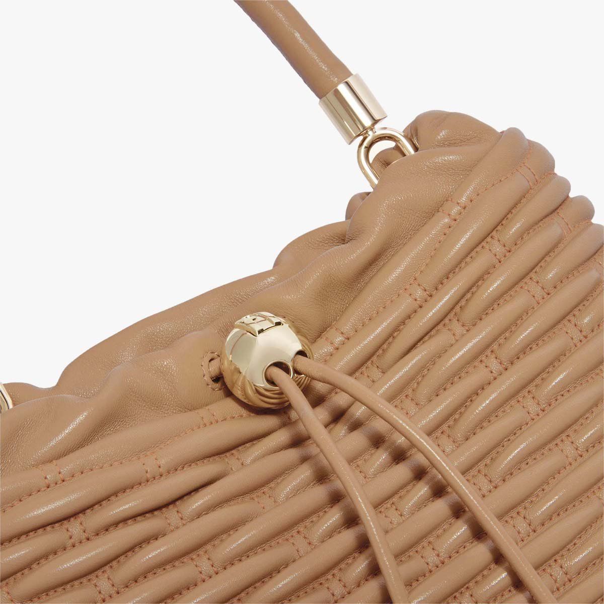 Túi Tote Nữ Furla Mionido Mini mang phong cách hiện đại với chất liệu da chần bông mềm. Thiết kế của túi được lấy cảm hứng từ nghệ thuật thủ công của những chiếc giỏ dệt Midollino. Túi được đóng mở bằng khóa nam châm bên trong, kết hợp phụ kiện logo Furla hình cầu tăng độ thanh lịch và nổi bật.