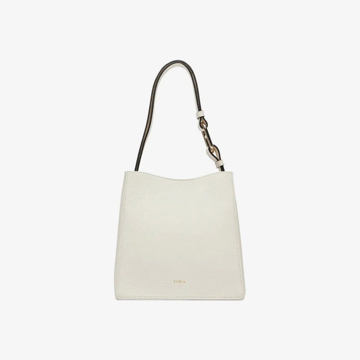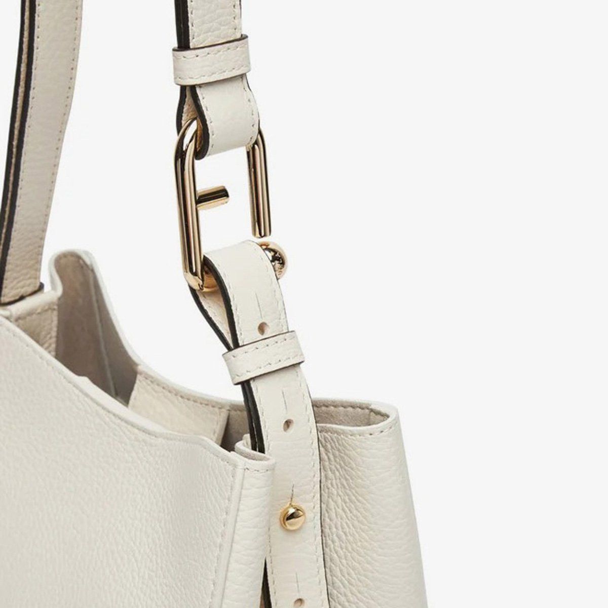 Đơn giản mà tinh tế, Furla Nuvola bucket bag sở hữu những đường nét mềm mại và thanh lịch. Được chế tác từ da vân cao cấp, chất liệu vừa nhẹ vừa mang lại cảm giác sang trọng, túi có kích thước nhỏ gọn, dễ dàng cầm tay hoặc đeo vai nhờ quai xách da có nút điều chỉnh. Điểm nhấn khác biệt nằm ở chi tiết kim loại Arcosfera – sự kết hợp biểu tượng logo Arch đặc trưng cùng họa tiết tròn độc đáo của Furla, tạo nên dấu ấn hiện đại và sang trọng.