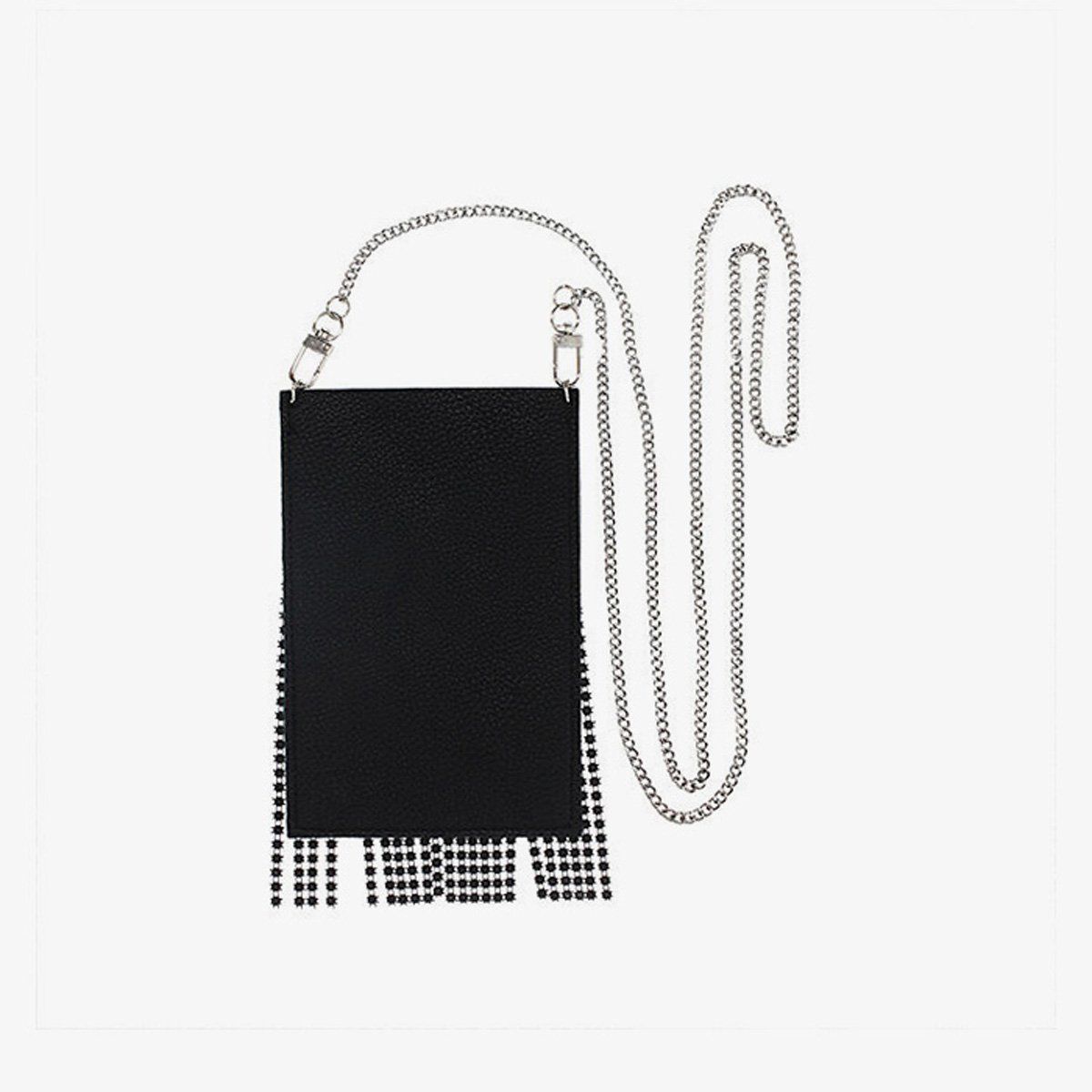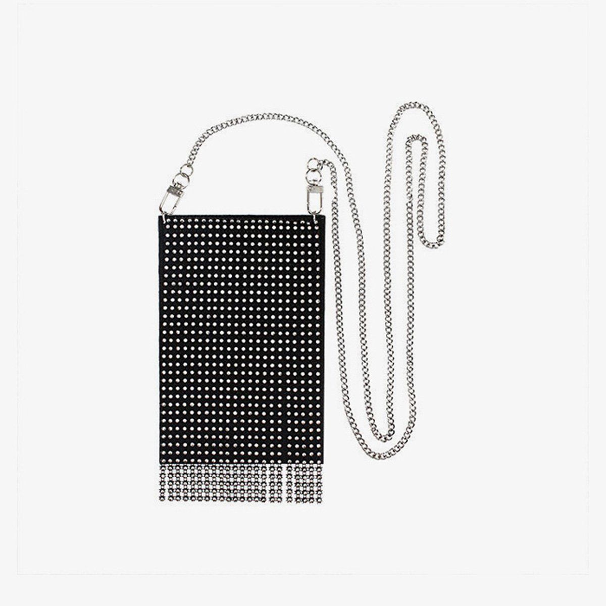Điểm đặc biệt của chiếc túi đựng điện thoại này là được tạo thành từ những dải đá lấp lánh màu bạc trên nền đen, tạo hiệu ứng tua rua siêu hợp thời trang! Nàng hãy diện nó trong những buổi tiệc khiêu vũ để mang đến nét quyến rũ và tinh tế cho vẻ ngoài của mình!