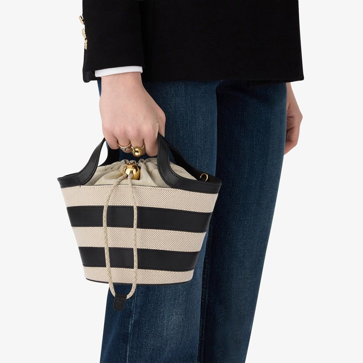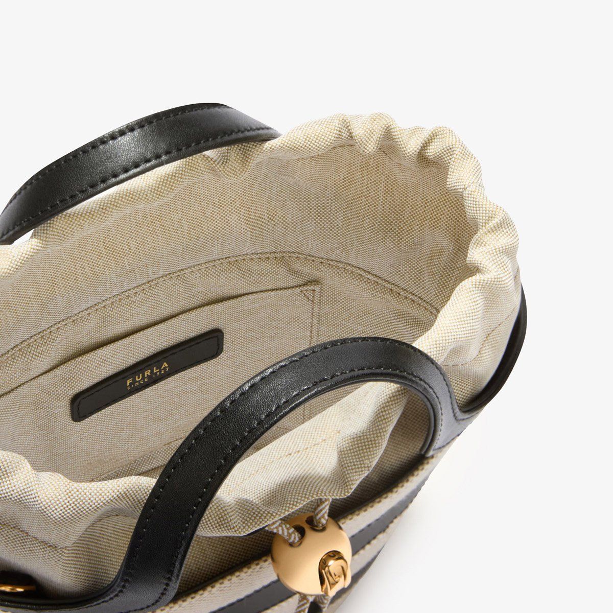 Furla Vortice mang dáng vẻ giỏ mini hiện đại với sự kết hợp chất liệu đầy tinh tế. Thiết kế phối hợp giữa vải canvas và da mềm mịn tạo nên hiệu ứng sọc thị giác độc đáo, vừa trẻ trung vừa sang trọng. Với hai quai xách cùng dây đeo da có thể tháo rời và điều chỉnh, chiếc túi này mang đến nhiều lựa chọn phong cách – từ cầm tay đến đeo vai hay đeo chéo.