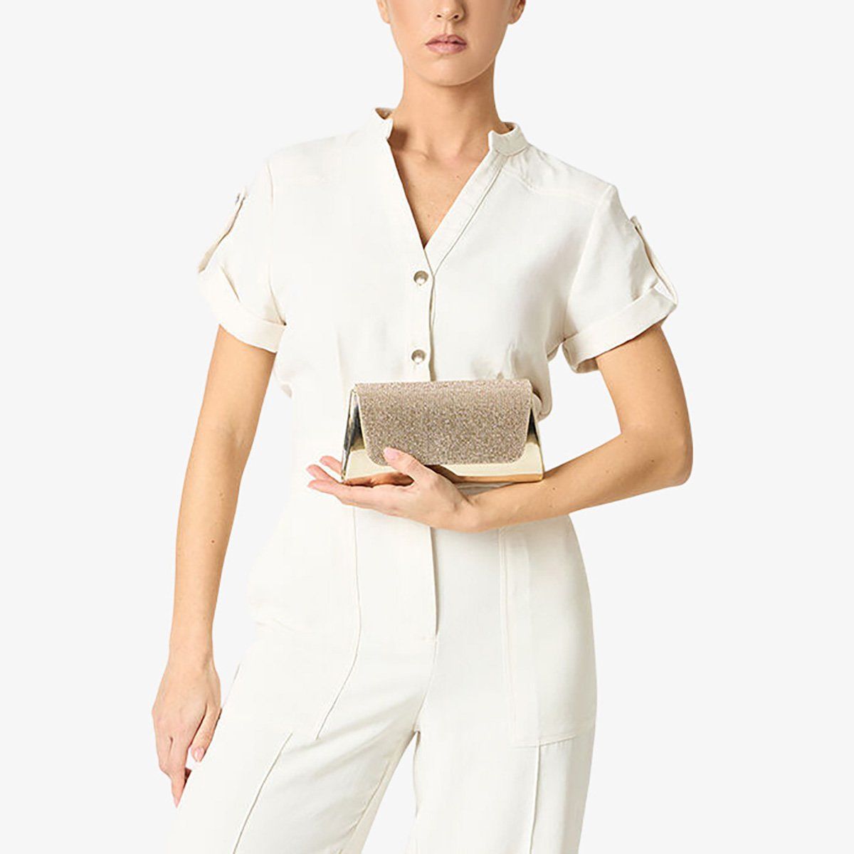 Nếu bạn đang tìm kiếm một vẻ ngoài tinh tế cho một buổi tối đặc biệt, thì chiếc clutch ánh gương của Primadonna Collection chính là phụ kiện không thể thiếu. Với bề mặt bóng loáng phản chiếu ánh sáng theo từng chuyển động, chiếc clutch này mang lại điểm nhấn rực rỡ cho bộ trang phục của bạn. Nắp gập được tô điểm bằng những viên đá nhỏ lấp lánh, tạo thêm nét thanh lịch và độc đáo đầy cuốn hút.