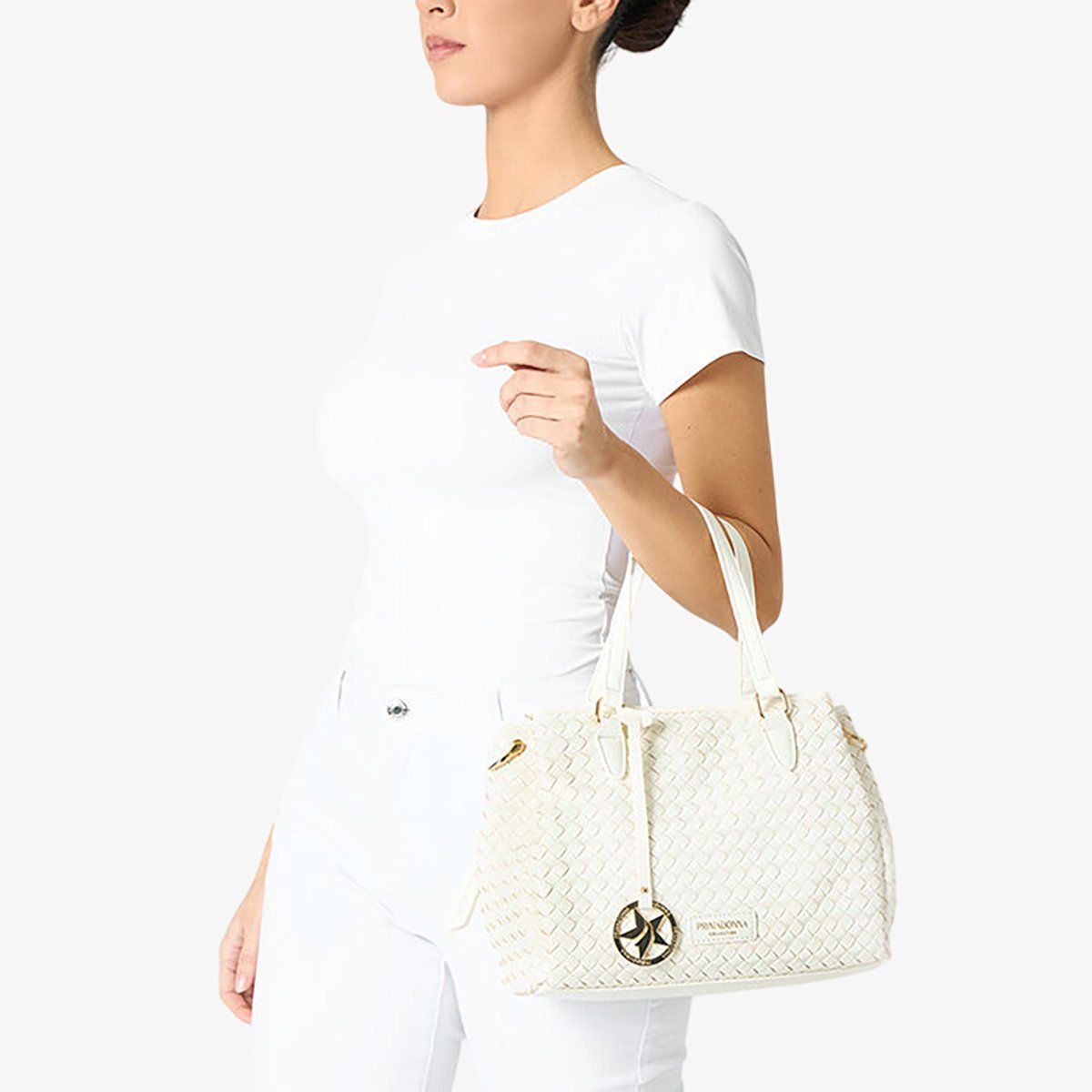 Hoàn hảo cho những ai yêu thích sự nổi bật đầy đẳng cấp, chiếc túi xách màu trắng với vân đan của Primadonna Collection là một item không thể thiếu trong tủ đồ của mọi quý cô hiện đại và tinh tế. Nàng hãy thử kết hợp túi cùng một chiếc áo sơ mi trắng oversized, quần jeans đen và một đôi boots Chelsea để có một vẻ ngoài thật sự hoàn hảo nhé.