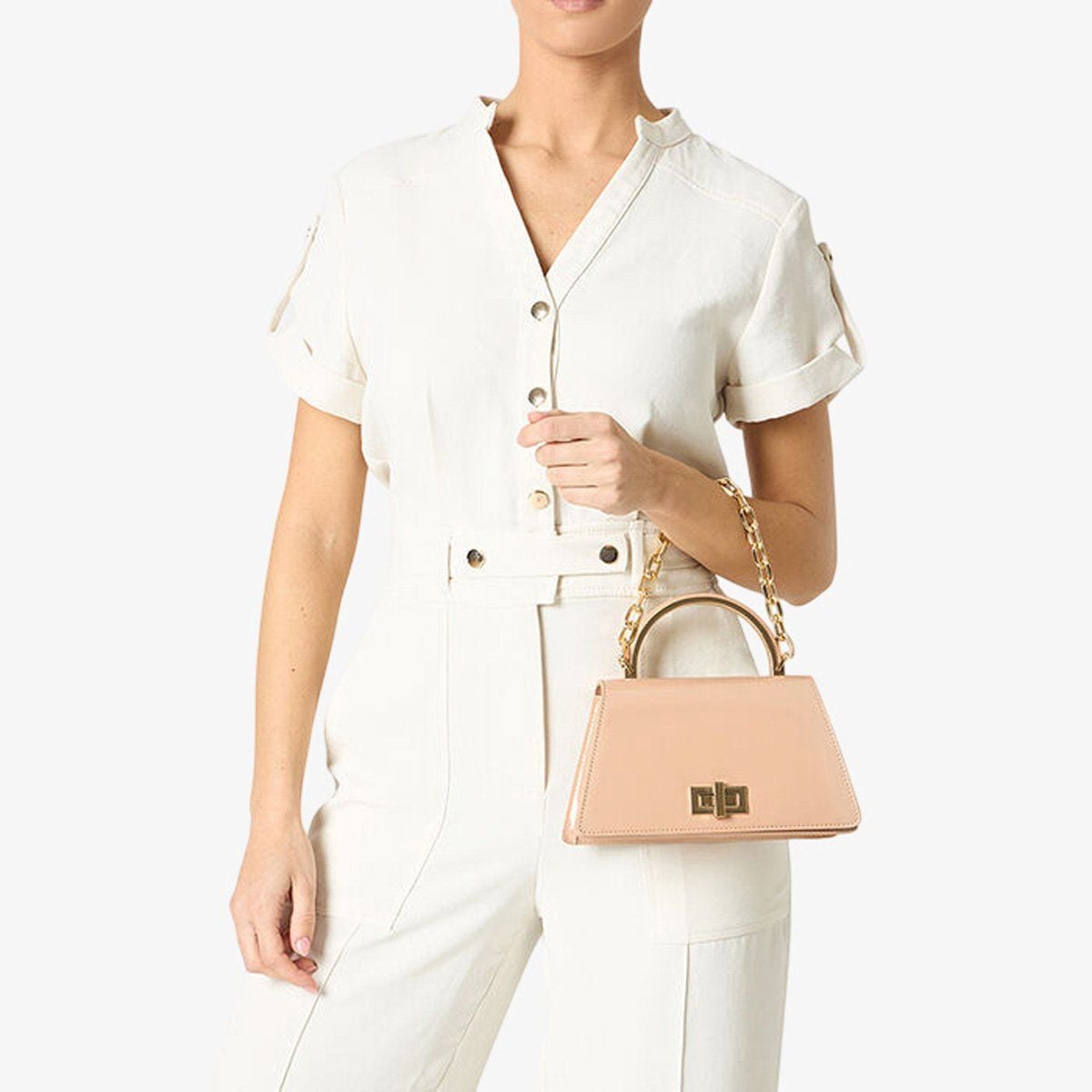 Túi xách nữ PRIMADONNA NUDE UNI - Chiếc túi mini da bóng màu nude này là ví dụ hoàn hảo cho sự kết hợp hài hòa giữa thiết kế táo bạo, sáng tạo và nét thanh lịch vượt thời gian. Phom dáng hình thang cùng bề mặt da bóng loáng mang đến cho túi một sức hút hiện đại đầy cuốn hút. Hãy phối cùng đầm ôm ngắn màu đen và hoàn thiện diện mạo với đôi giày cao gót da bóng cùng tông để tạo nên bộ trang phục ấn tượng.
