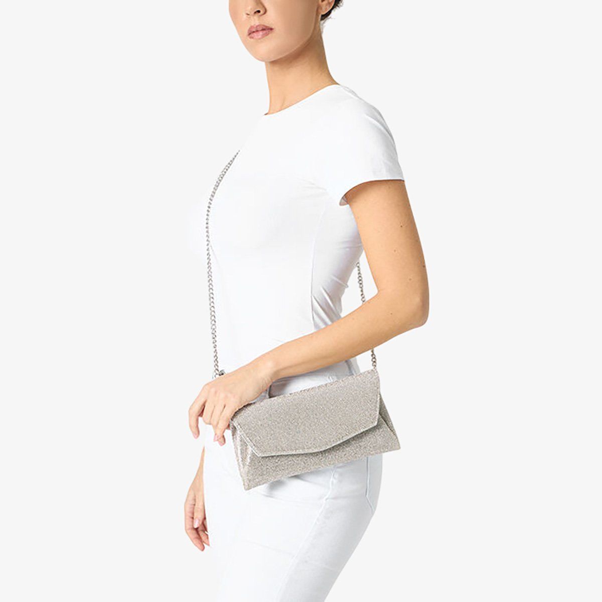 Chiếc clutch đính đá màu bạc ánh kim của Primadonna Collection chính là phụ kiện giúp nàng tạo nên sự khác biệt - biến hóa bộ trang phục đơn giản nhất trở thành một tuyên ngôn phong cách đích thực. Hoàn hảo cho những ai yêu thích vẻ đẹp rực rỡ một cách thanh lịch mà vẫn không muốn đánh đổi sự tiện dụng và thoải mái. Nàng hãy thử kết hợp túi cùng một chiếc đầm lụa mềm mại để có một vẻ ngoài sành điệu hoặc một bộ trang phục dạ tiệc đầy lôi cuốn nhé.