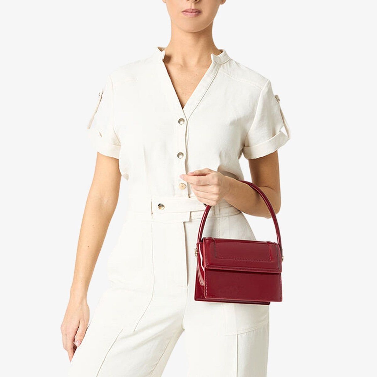 Túi xách nữ PRIMADONNA CHERRY UNI - Chiếc túi mini màu đỏ burgundy từ Primadonna Collection sở hữu thiết kế đơn giản nhưng đầy tinh tế – lý tưởng cho những ai tìm kiếm sự tiện dụng và phong cách mà vẫn muốn giữ nét độc đáo riêng. Để có một vẻ ngoài mùa hè thanh lịch và thoải mái, hãy phối cùng áo sơ mi cotton trắng oversized và quần palazzo vải linen màu cát.
