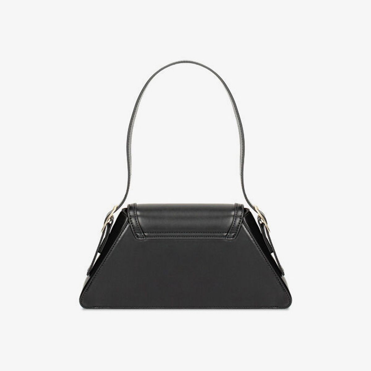Mang thiết kế hình tam giác độc đáo và chất liệu da đen cao cấp, chiếc túi xách này của Primadonna Collection là một phụ kiện đầy cá tính và hiện đại. Các chi tiết dây đai vắt chéo phía trước tạo điểm nhấn mạnh mẽ, trong khi quai đeo vai mảnh và tinh tế hoàn thiện vẻ ngoài thanh lịch. Đây là lựa chọn hoàn hảo cho những ai muốn tạo sự khác biệt và thể hiện phong cách riêng, phù hợp để mang theo trong các buổi đi chơi, sự kiện hoặc đơn giản là thêm nét độc đáo cho trang phục hàng ngày.