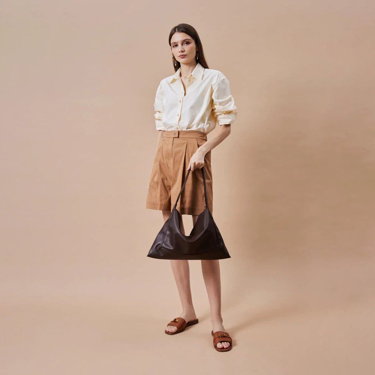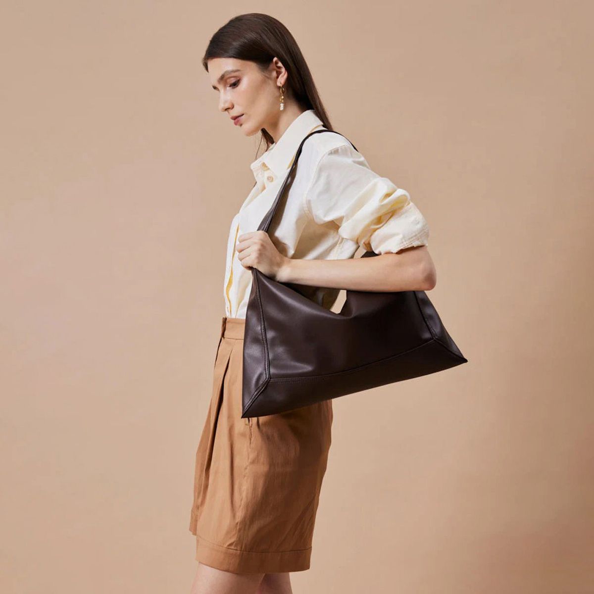 Lucia là hiện thân của chủ nghĩa tối giản đầy phóng khoáng, được tạo nên từ da bò mềm mại cao cấp với phom dáng tự nhiên, thoải mái. Thiết kế dành riêng cho kiểu đeo vai một bên mang lại vẻ thanh lịch không gắng gượng, trong khi không gian rộng rãi cùng lớp lót vải cotton êm ái giúp bạn mang theo những vật dụng hằng ngày trong tinh thần quiet luxury – sang trọng trong sự giản đơn.