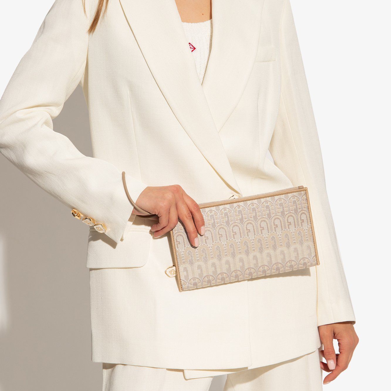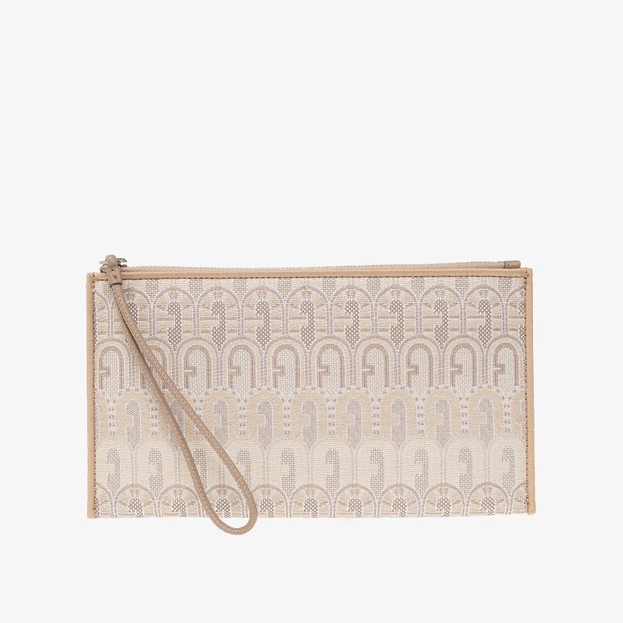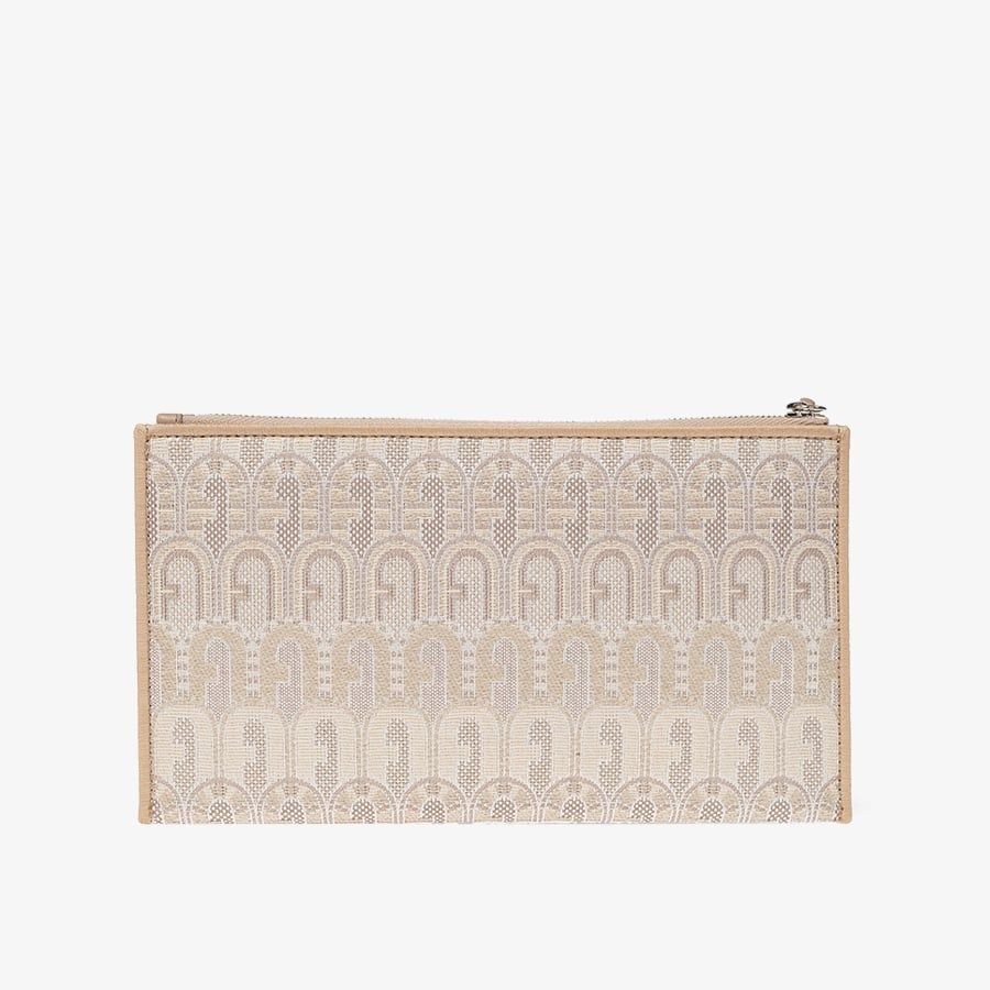 • Chiếc ví được làm bằng vải jacquard tái chế được thiết kế với họa tiết Arch cổ điển, kiểu dáng phong bì Furla Opportunity này vừa phải và mỏng được sử dụng như một chiếc ví cầm tay. Tiện dụng khi để các giấy tờ hoặc vật dụng riêng biệt và cho chiếc ví và một chiếc túi lớn hơn.