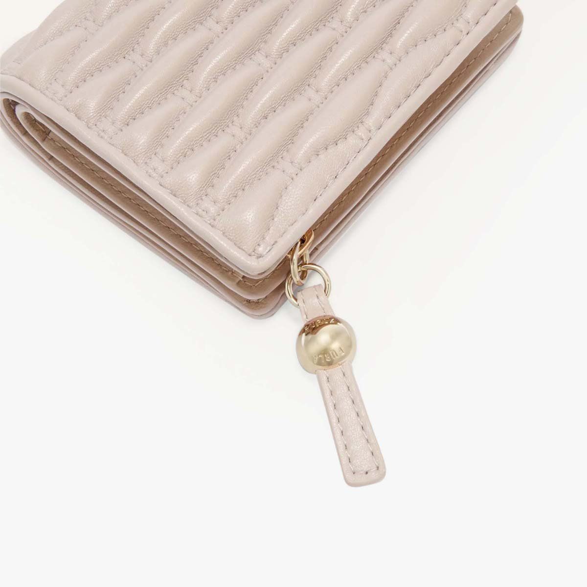 Ví Furla Mionido được thiết kế bằng da chần bông mềm. Họa tiết trên túi được lấy cảm hứng từ nghệ thuật thủ công của những chiếc giỏ dệt Midollino thể hiện sự tỉ mỉ đến từng chi tiết.