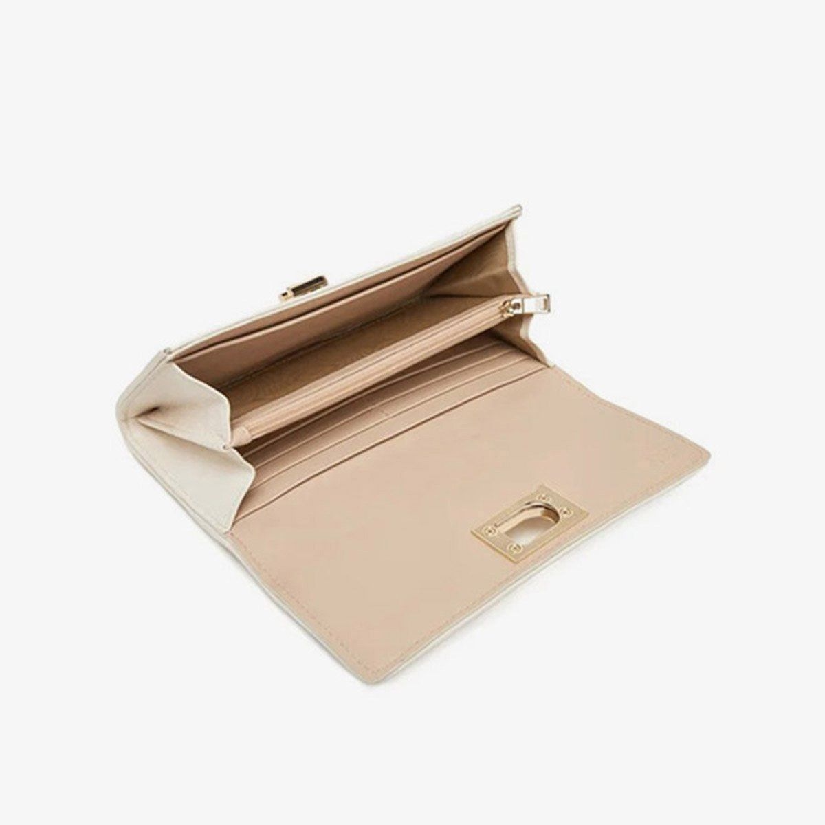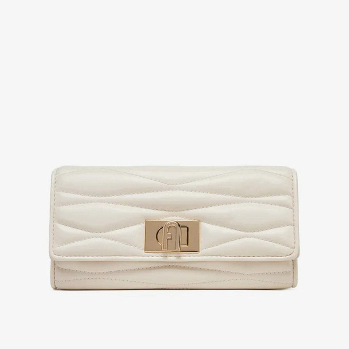 - Cấu trúc & thiết kế: Thiết kế kiểu ví Continental, dạng dài, có nắp gập/flap với nút đóng/chốt hoặc turn-lock kiêm logo Arch đặc trưng Furla. Bên ngoài cũng có ngăn mở sau lưng để dễ dàng lấy các vật thường dùng.