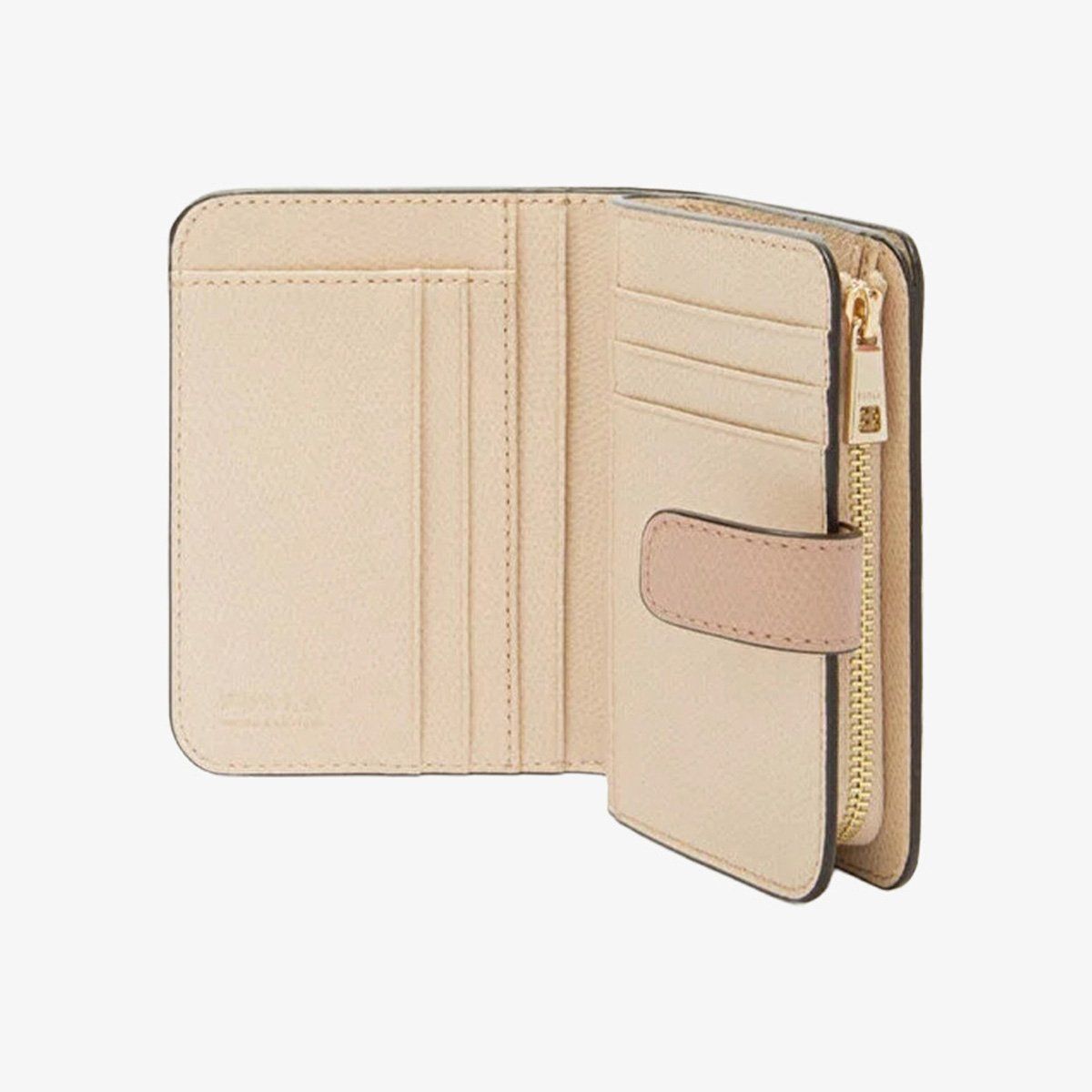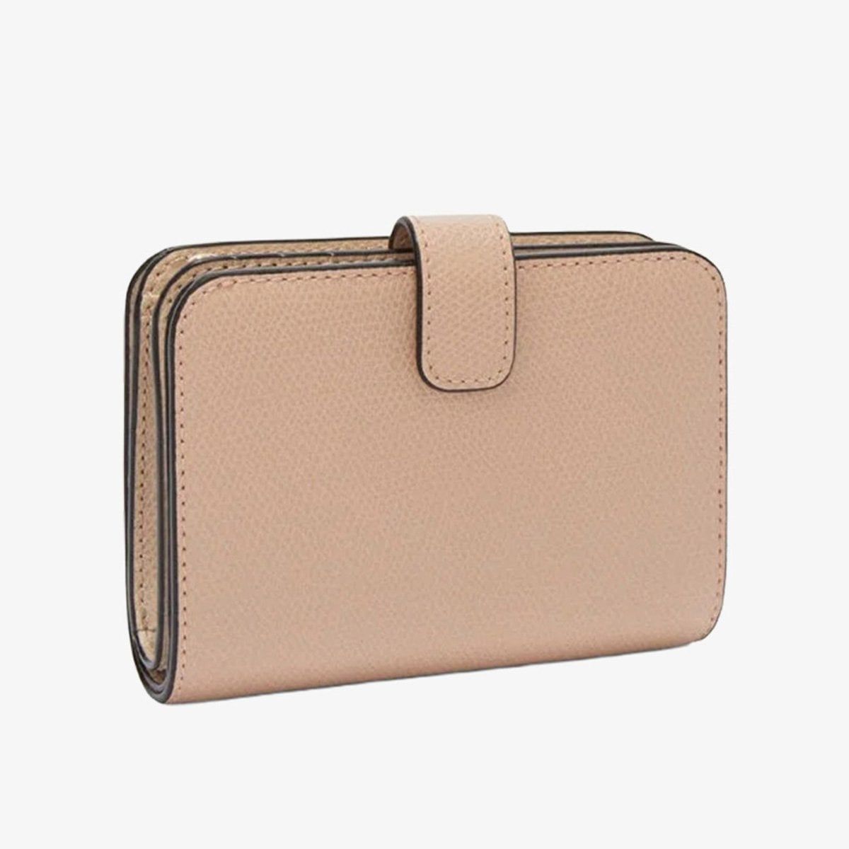 - Kiểu dáng: thiết kế dạng ví gập (bi-fold / bifold) hoặc compact snap-flap / press stud flap, góc bo mềm mại → tạo cảm giác thanh lịch, dễ sử dụng.