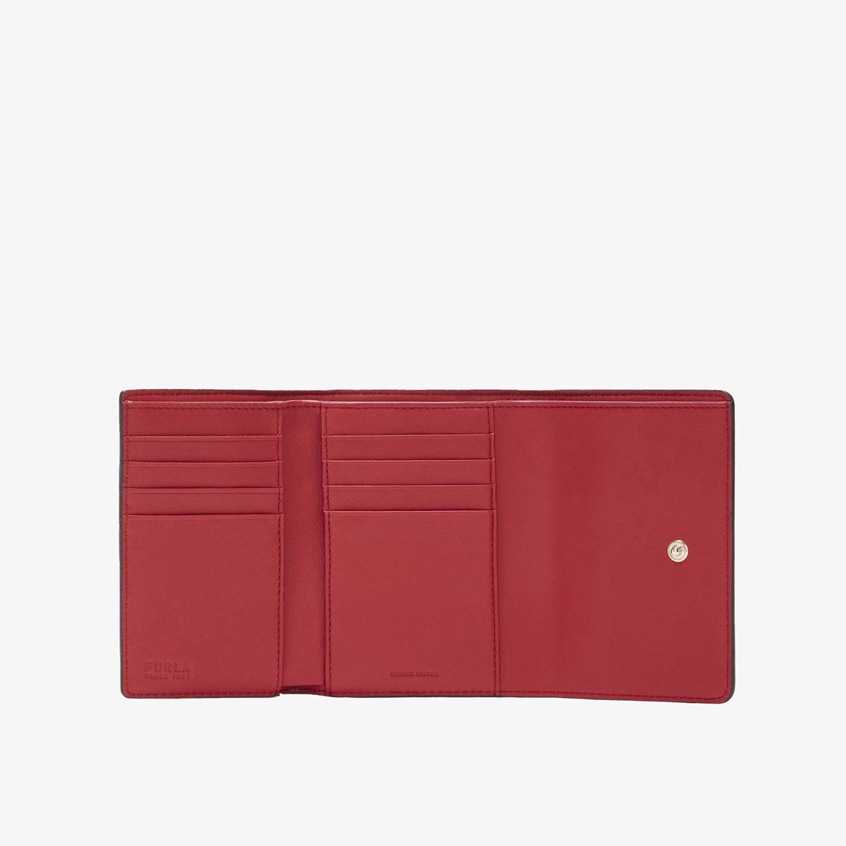 Ví Nữ Furla Sfera được làm từ chất liệu da mềm mại. Hoàn hảo về tính năng, ví có thiết kế gập đôi và bên trong được sắp xếp một cách logic để giữ cho tiền mặt, thẻ tín dụng và giấy tờ tùy thân một cách ngăn nắp. Nắp ví cùng với khóa bấm được trang trí bằng phụ kiện kim loại hình cầu mạ vàng – biểu tượng mang tính biểu trưng của thương hiệu Furla.