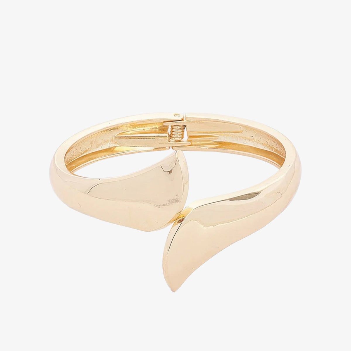 Một tác phẩm nghệ thuật thu nhỏ trên cổ tay, chiếc vòng tay bản to ánh vàng mang đậm hơi thở hiện đại với đường cong uốn lượn độc đáo. Bề mặt kim loại bóng loáng phản chiếu ánh sáng đầy mê hoặc, biến phụ kiện trở thành điểm nhấn sang trọng và cuốn hút ngay cả khi bạn diện outfit tối giản nhất.